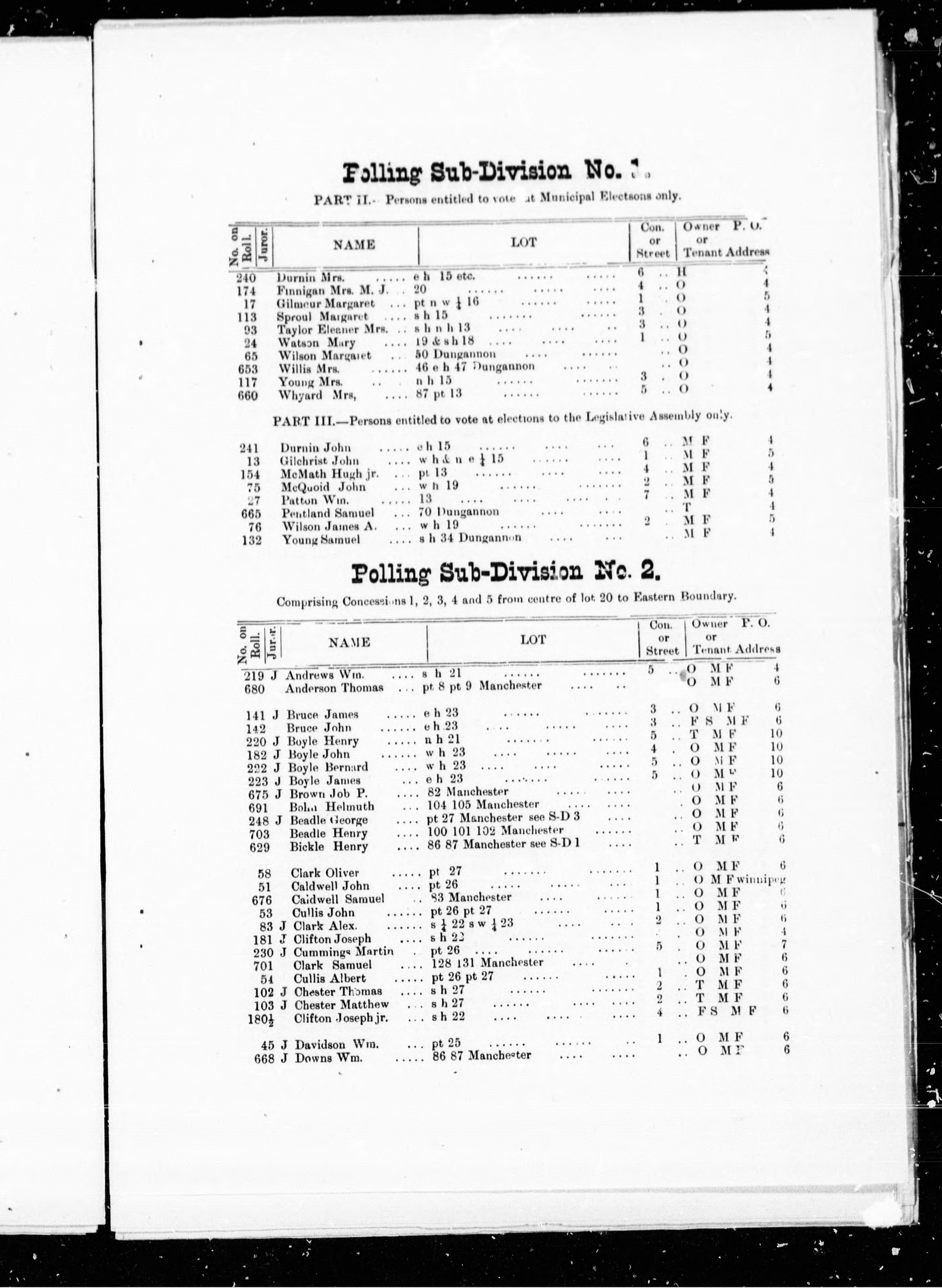 West Wawanosh (Ont.) -- Listes electorales. - Document original