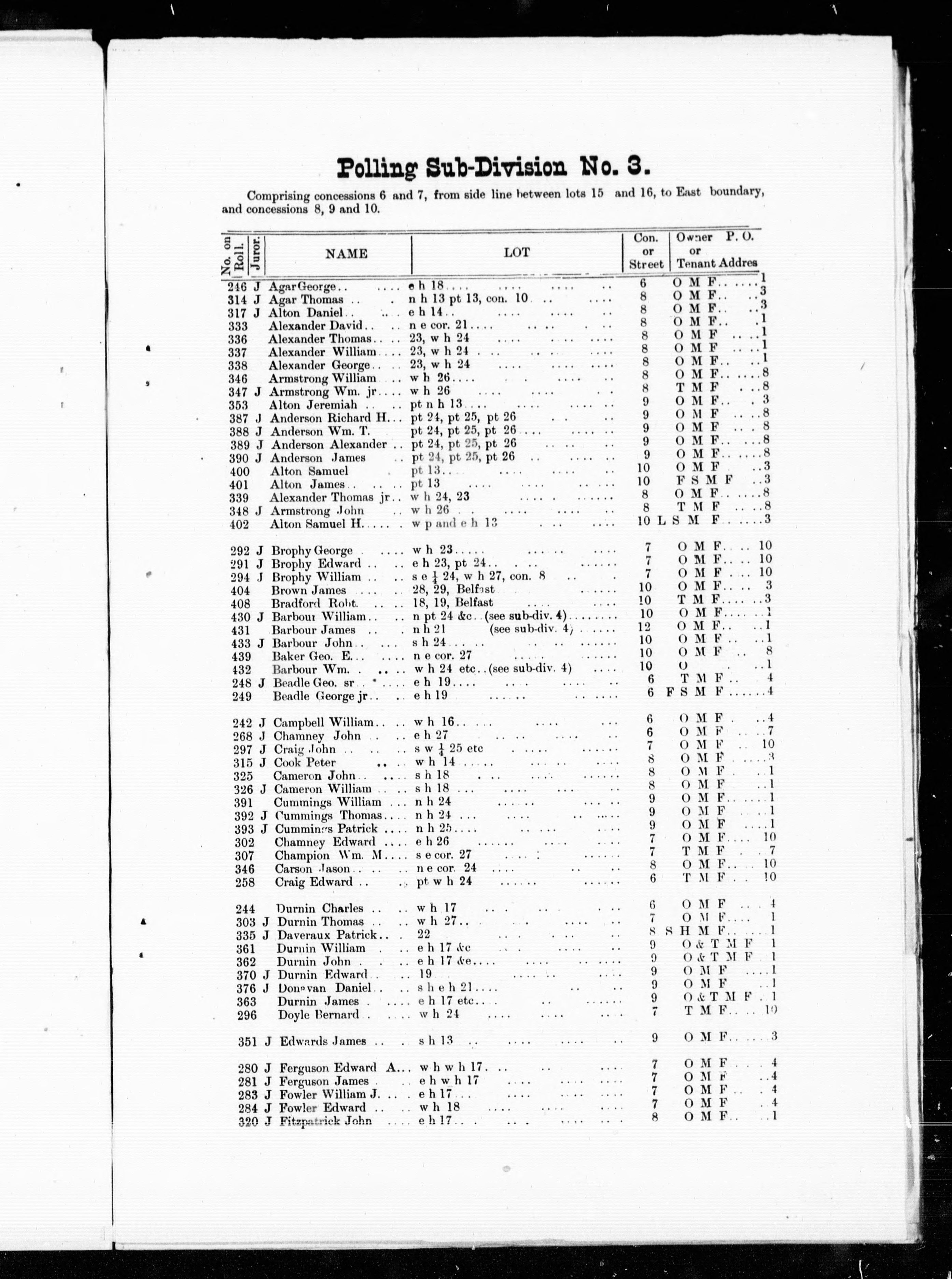 West Wawanosh (Ont.) -- Listes electorales. - Document original