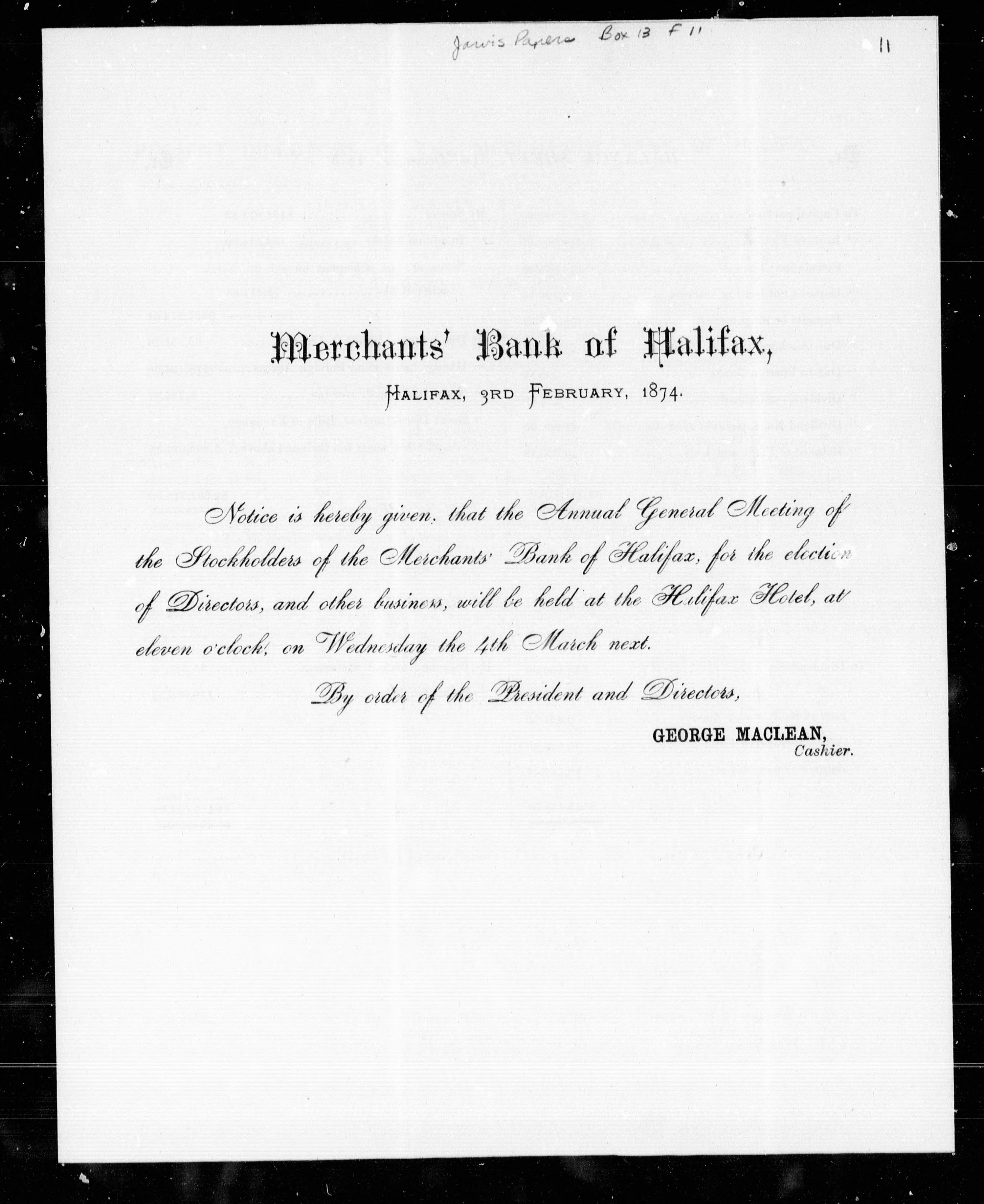 Dated: Halifax, 3rd February, 1874.