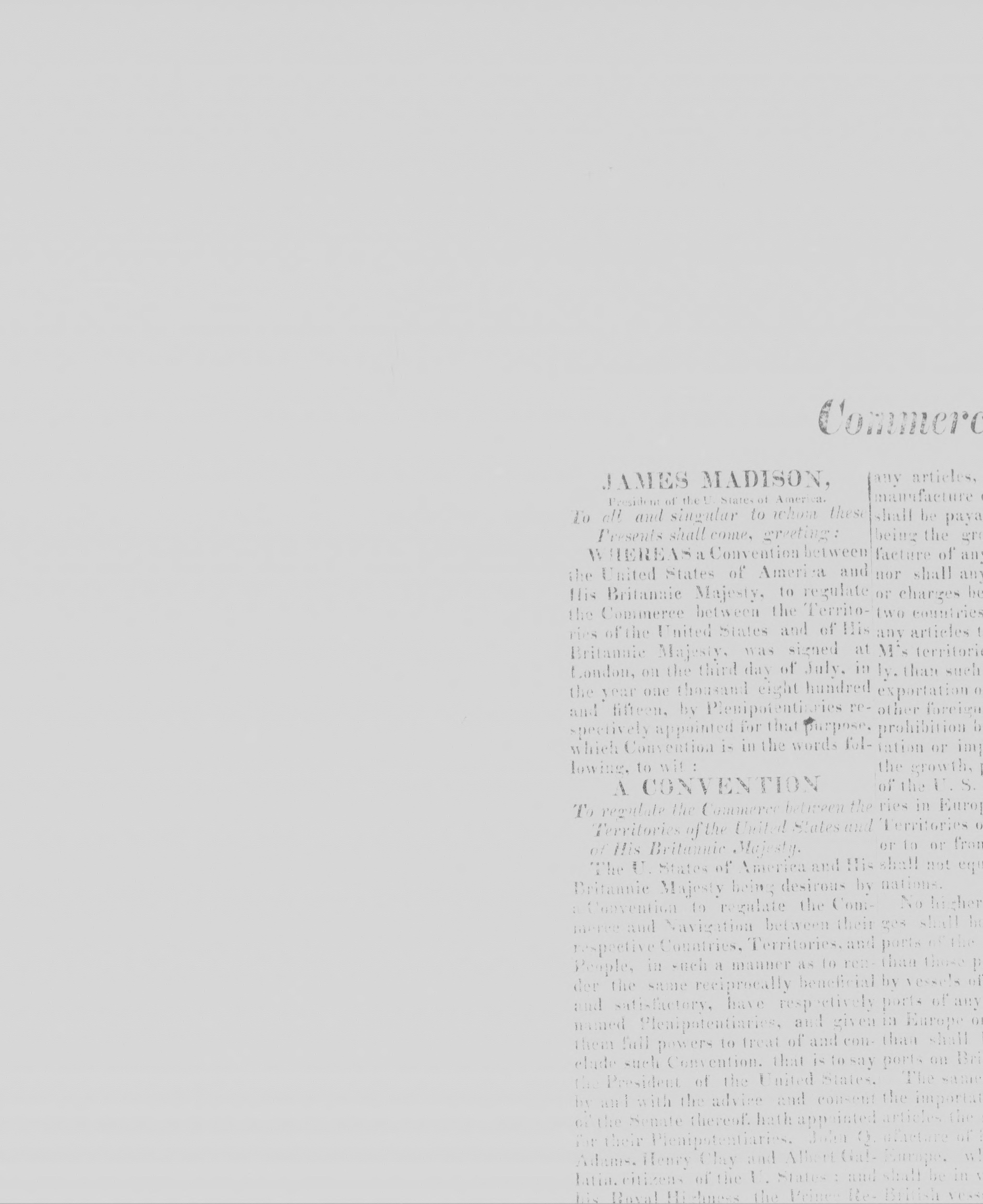 - Commercial treaty with England : James Madison, President of the U. States of America, to all and singular to whom these presents shall come ..