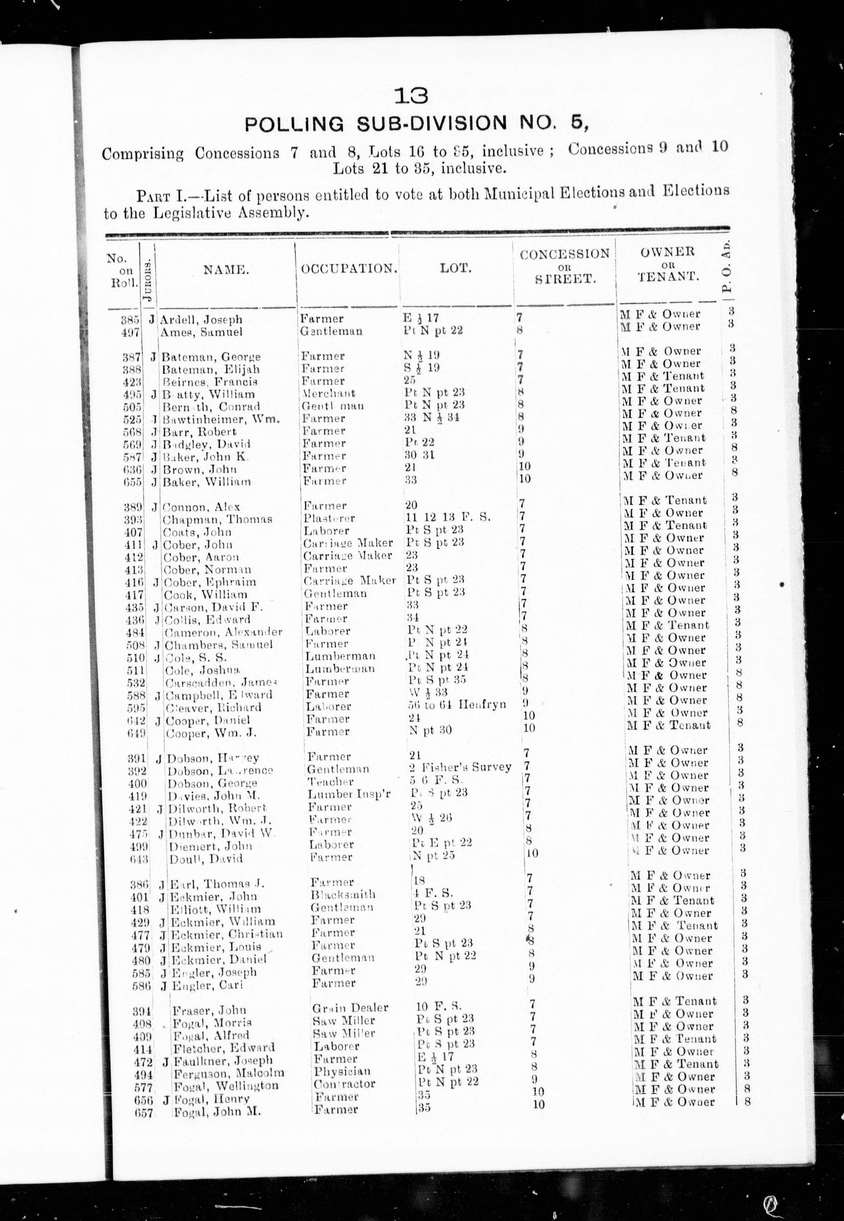 Voters' list, 1898 : municipality of Grey.