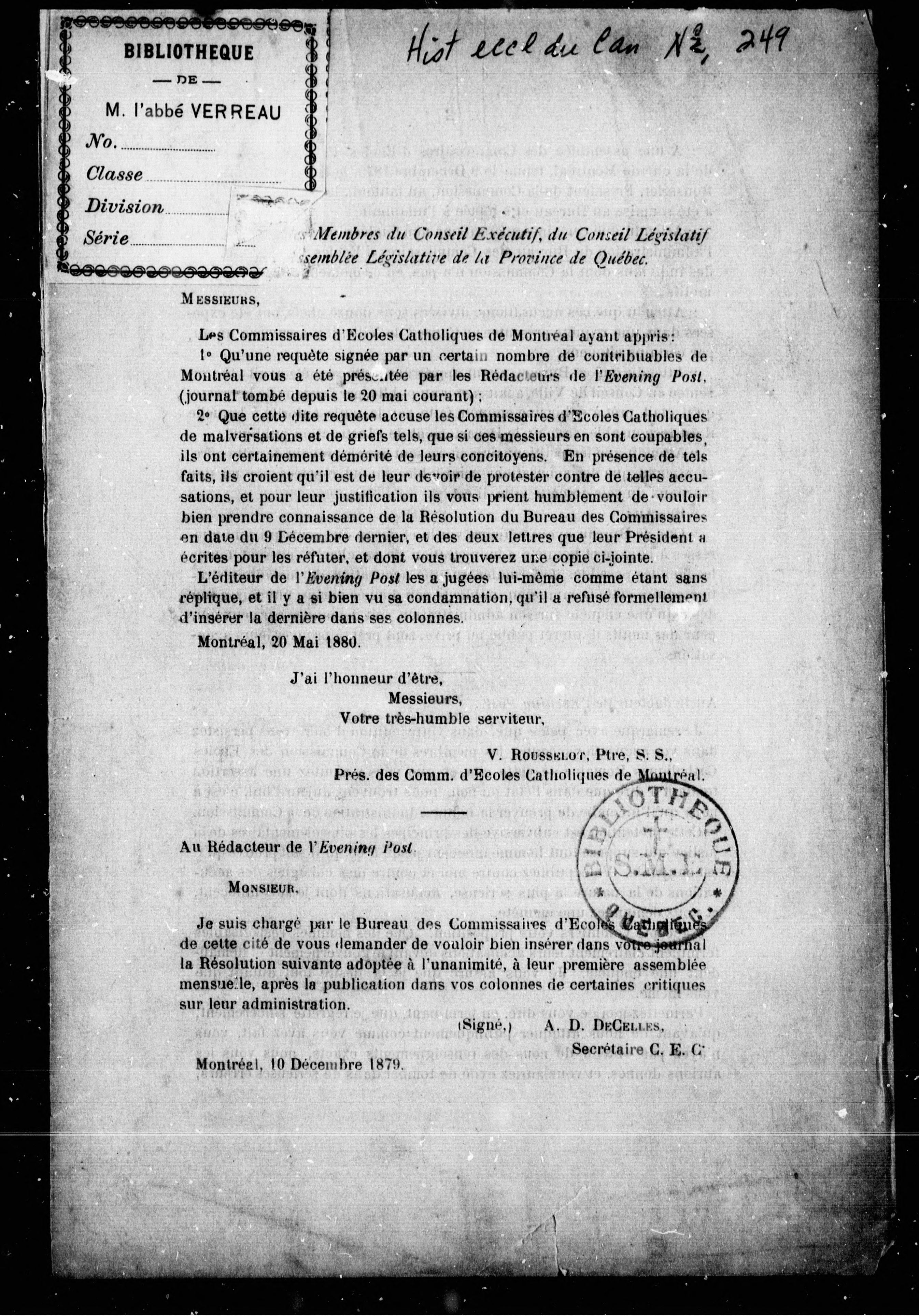 Bureau des commissaires d'écoles catholiques romains de Montréal.