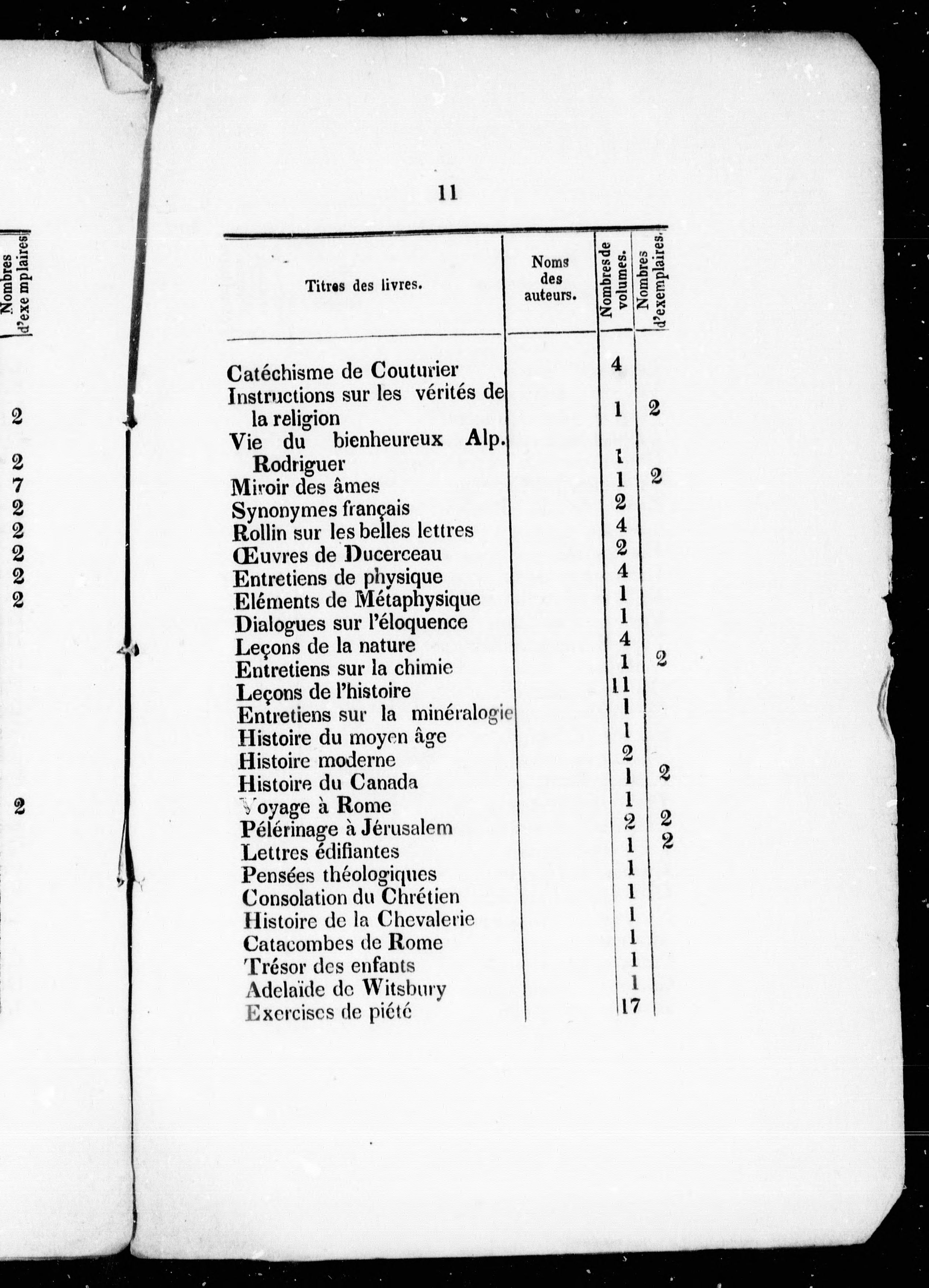 Liste des livres de la bibliothèque de la paroisse de N.-D. de Québec.