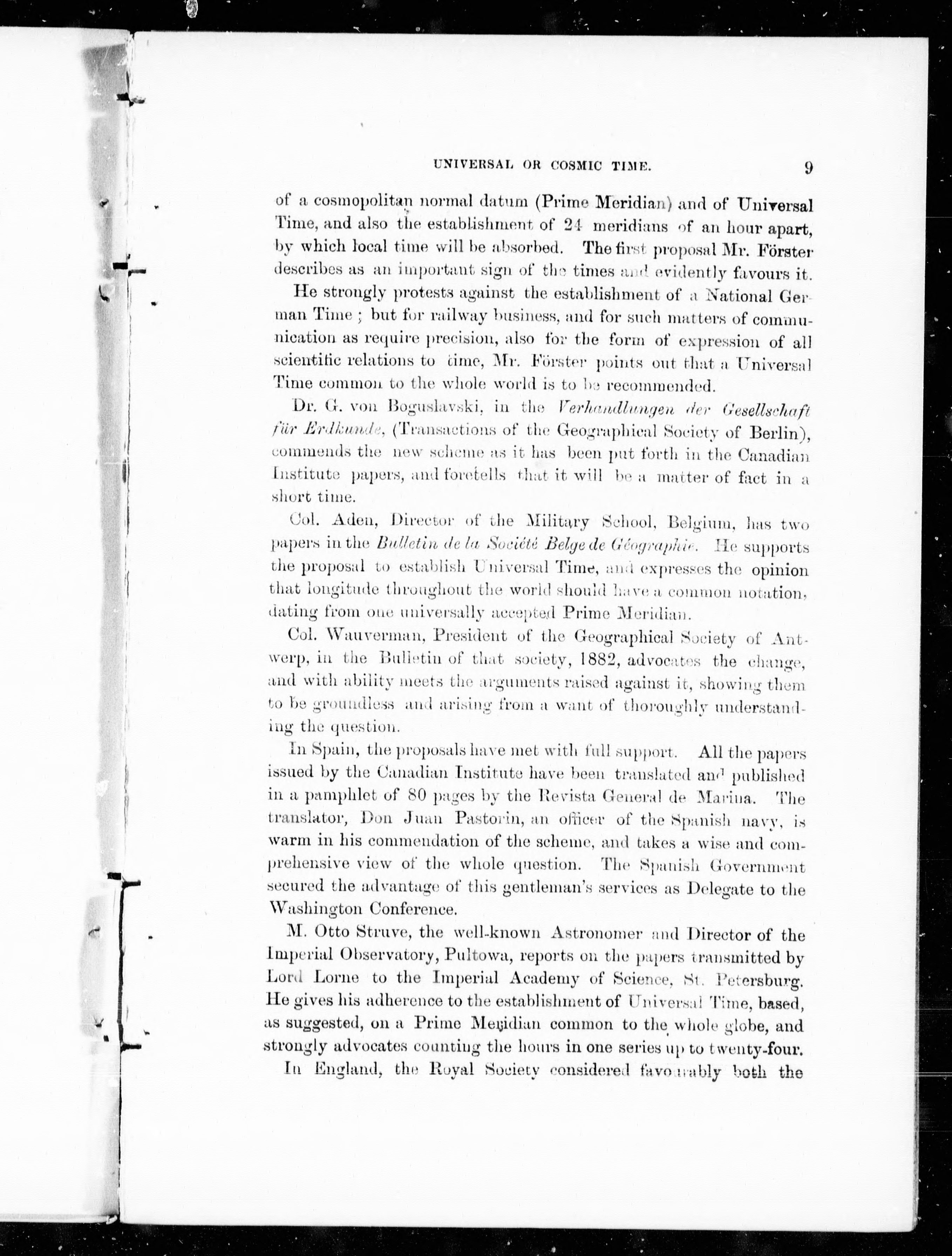 Universal or cosmic time : by Sandford Fleming, C. E., C.M.G., etc. : together with other papers, communications and reports in the possession of the Canadian Institute respecting the movement for reforming the time-system of the world and establishing a prime meridian as a zero common to all nations. - Published