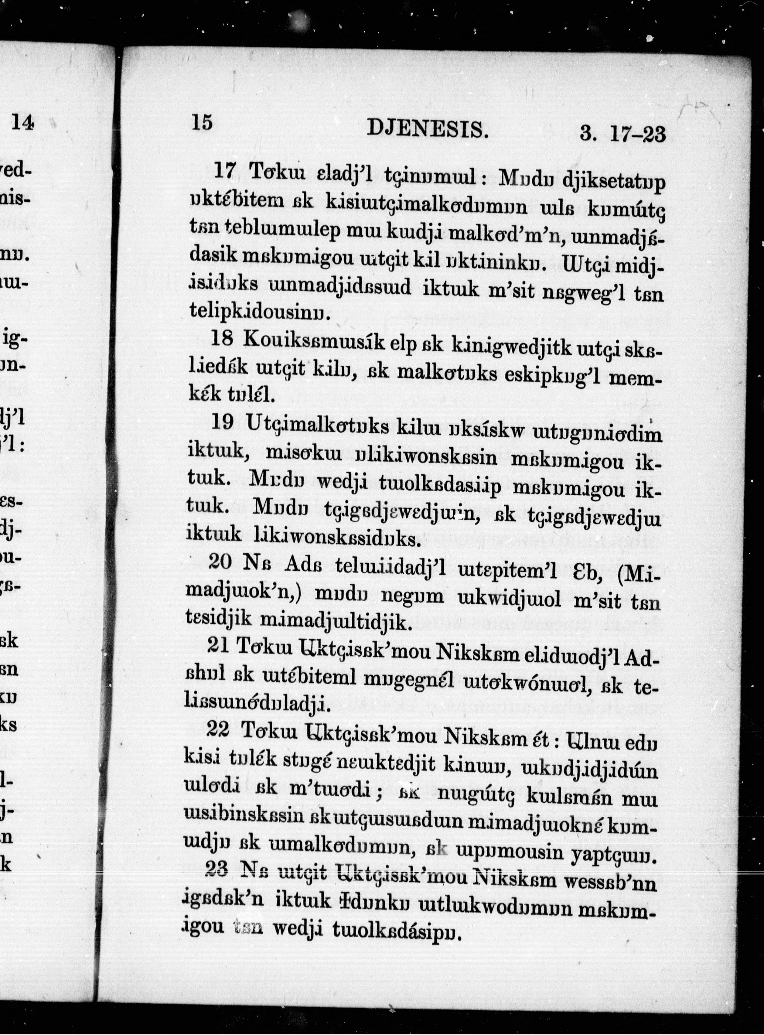 [Th]e buk ov Djenesis : in Mikmak. - Adresse bibliographique