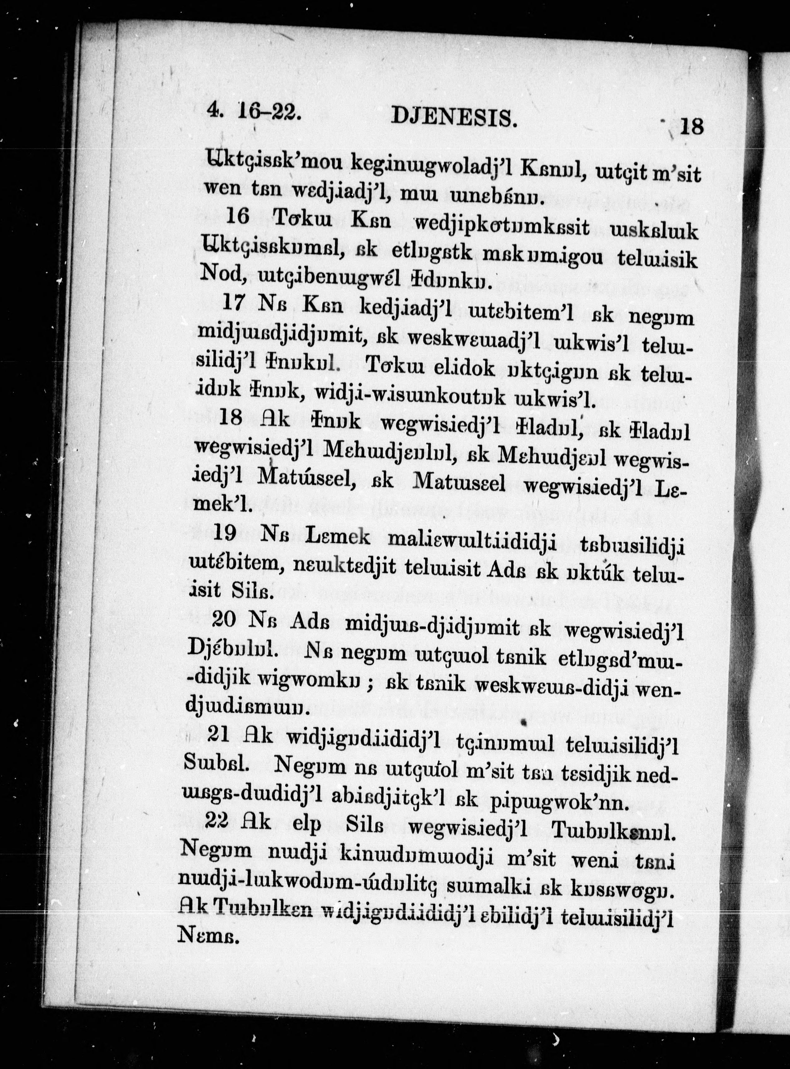 [Th]e buk ov Djenesis : in Mikmak. - Adresse bibliographique
