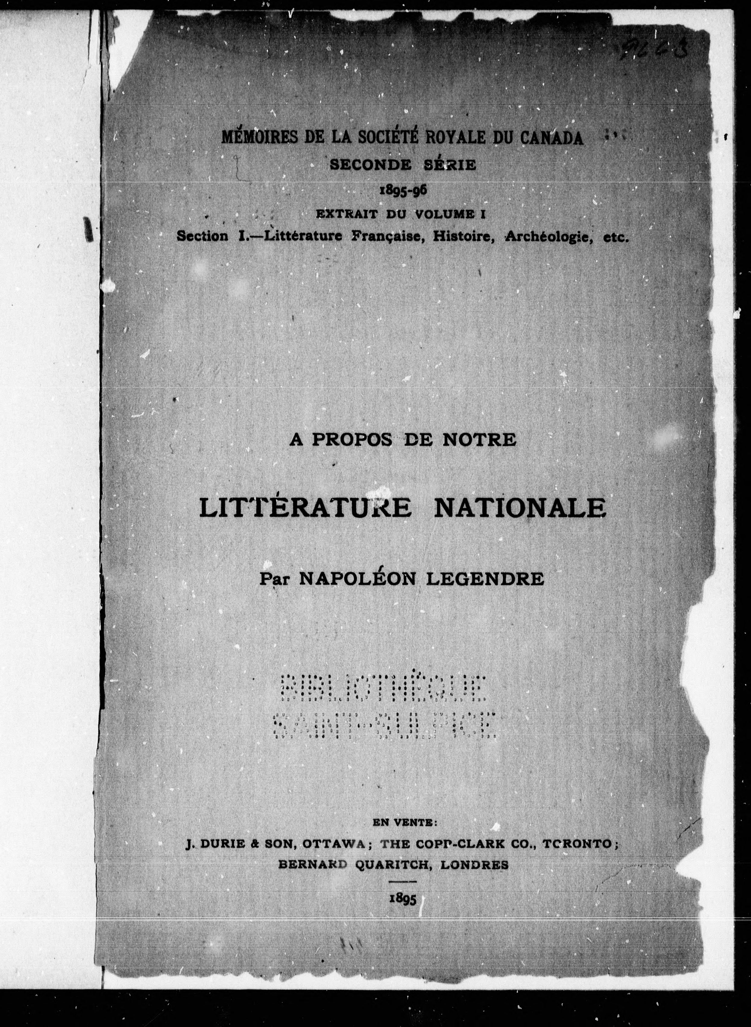 En tête du titre: Mémoires de la Société royale du Canada. Seconde série 1895-96. Extrait du volume I. Section I.-Littérature française, histoire, archéologie, et cetera.