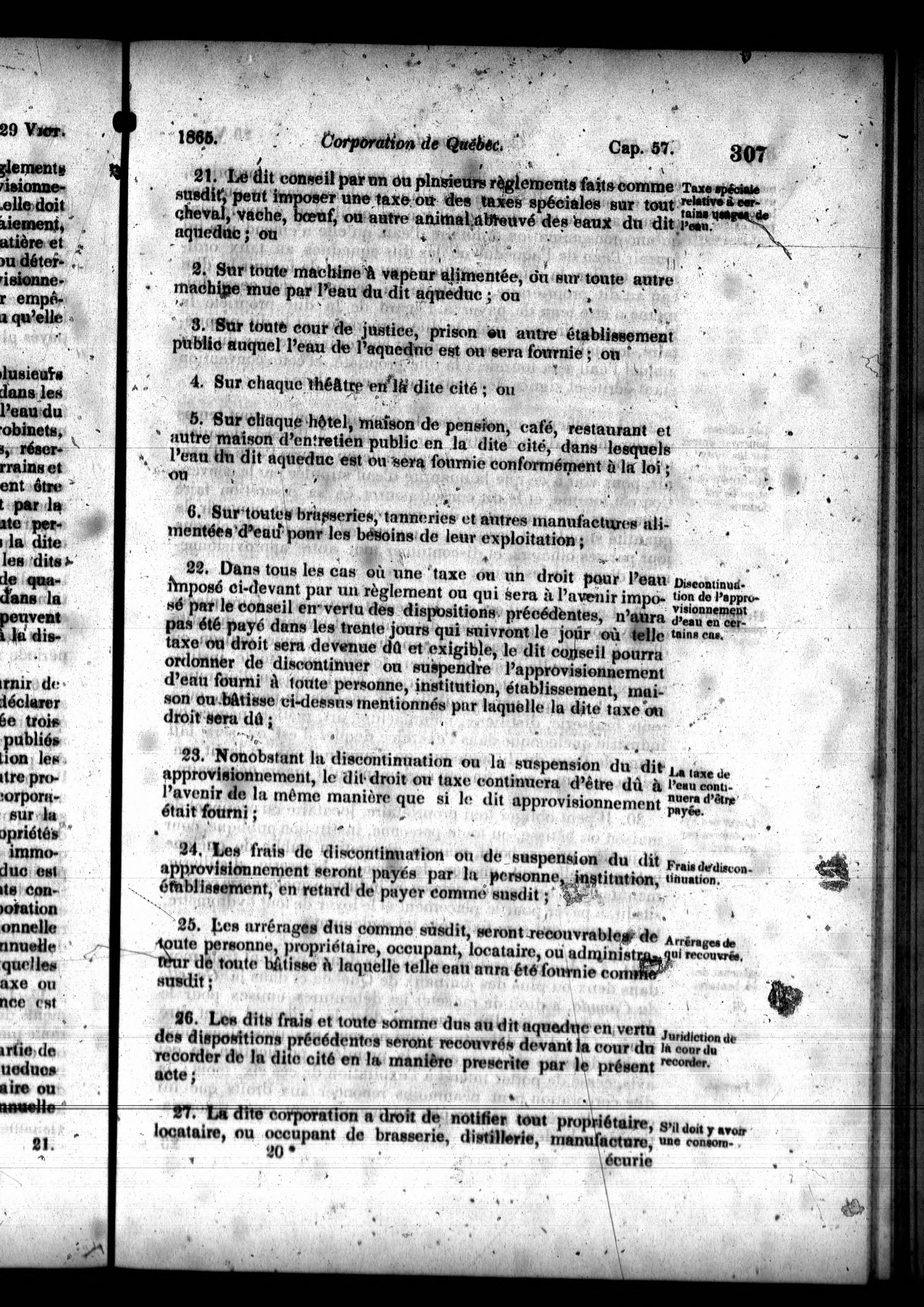 - Acte pour amender et refondre les dispositions contenues dans les actes et ordonnances concernant l'incorporation de la cité de Québec et l'aqueduc de la dite cité.