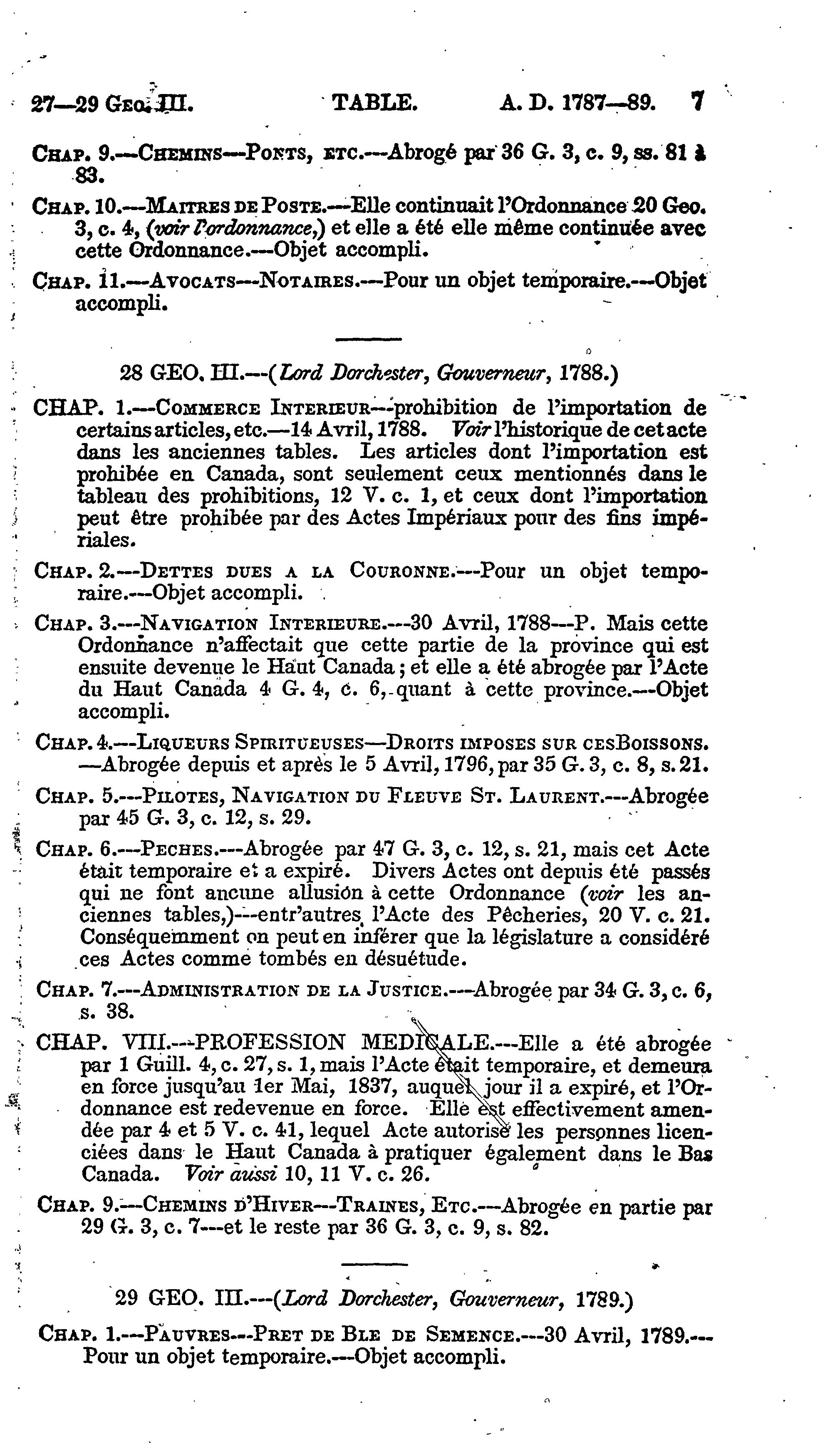 Table des statuts provinciaux et des ordonnances en force ou qui ont été en force dans le Bas Canada :