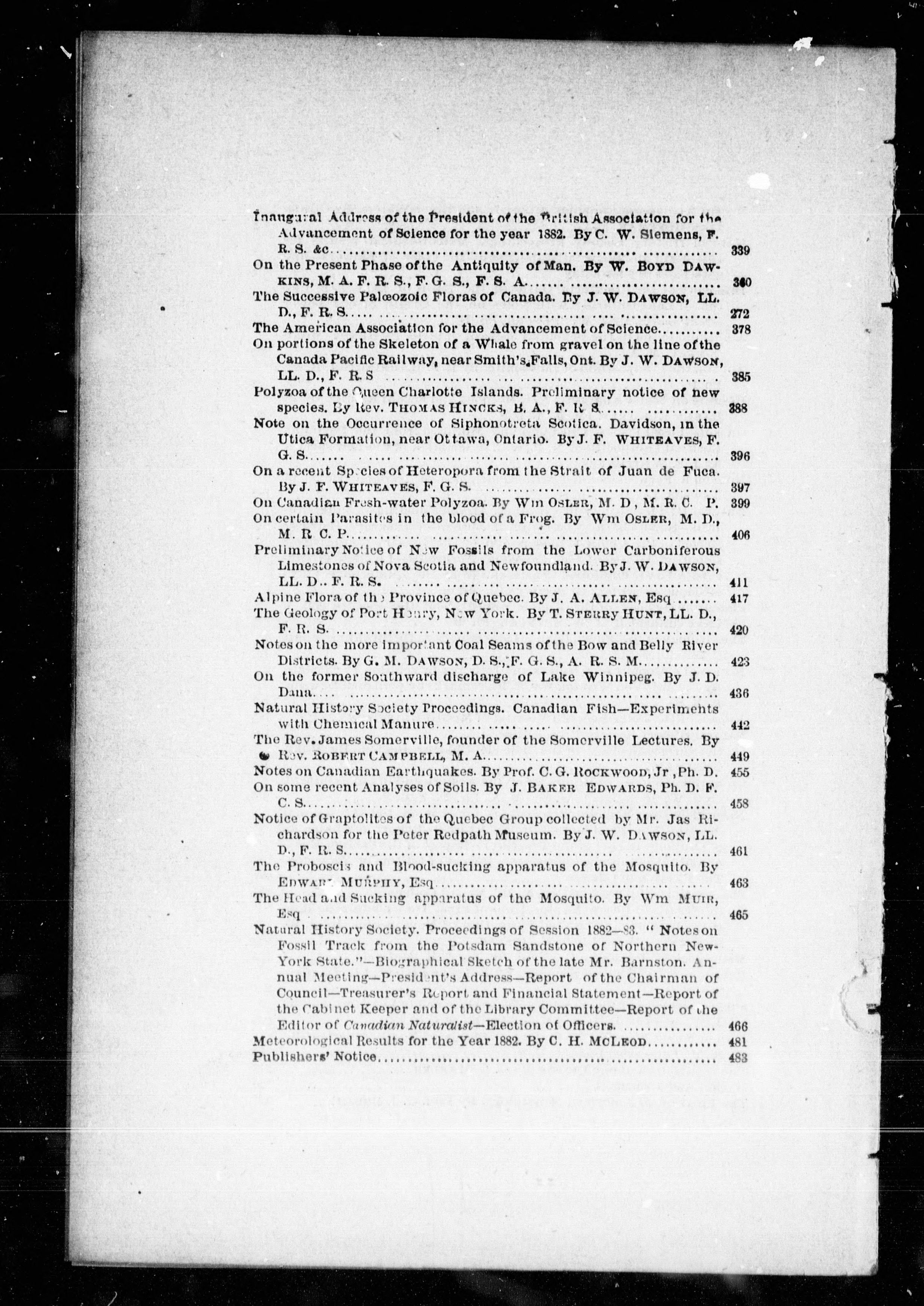 Summary of the original articles which have appeared in the Canadian naturalist.