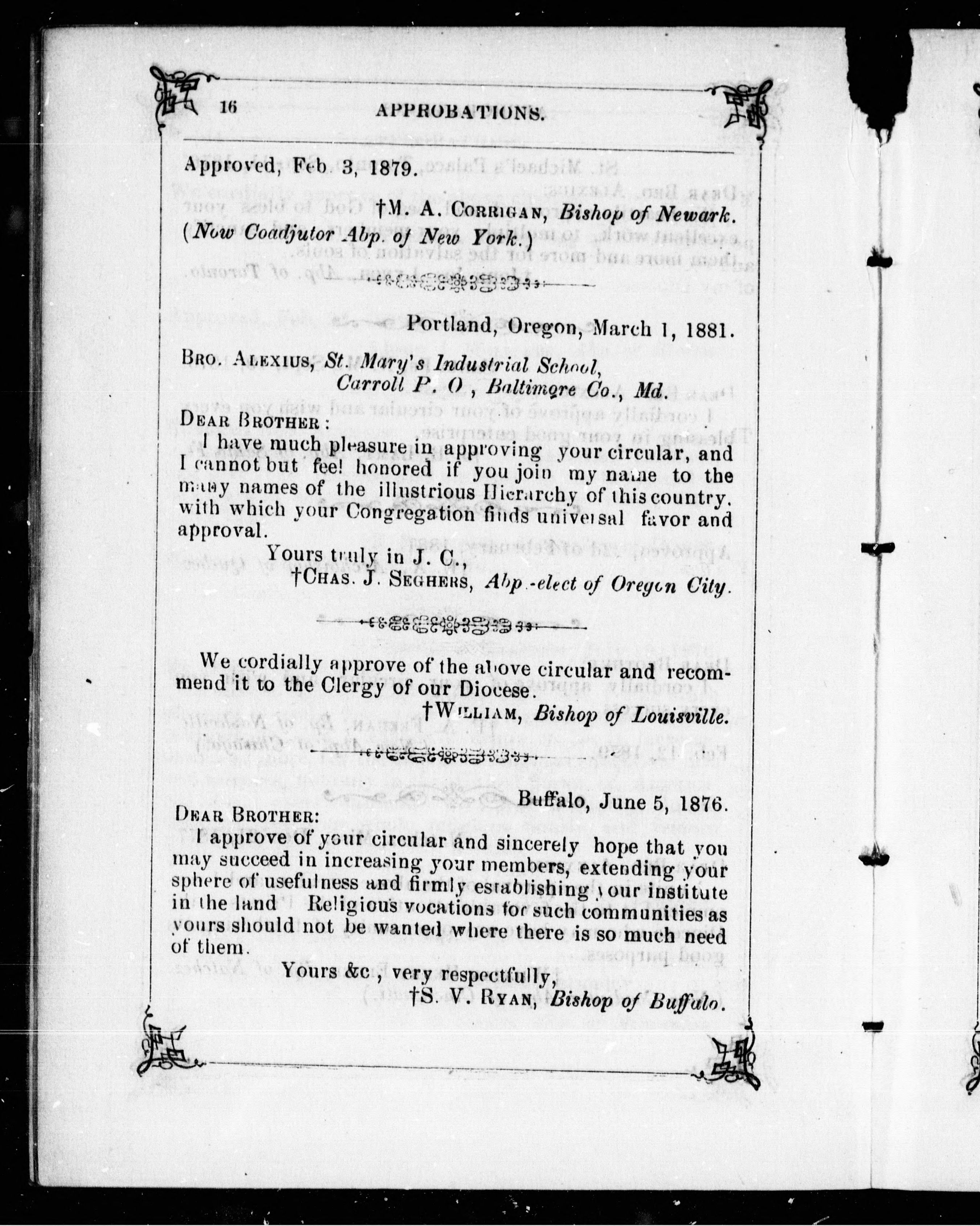 Sketch of the Congregation of the Xaverian Brothers : also, the approbations of the archbishops, bishops, and vicars-apostolic of the United States and Canada. - Adresse bibliographique