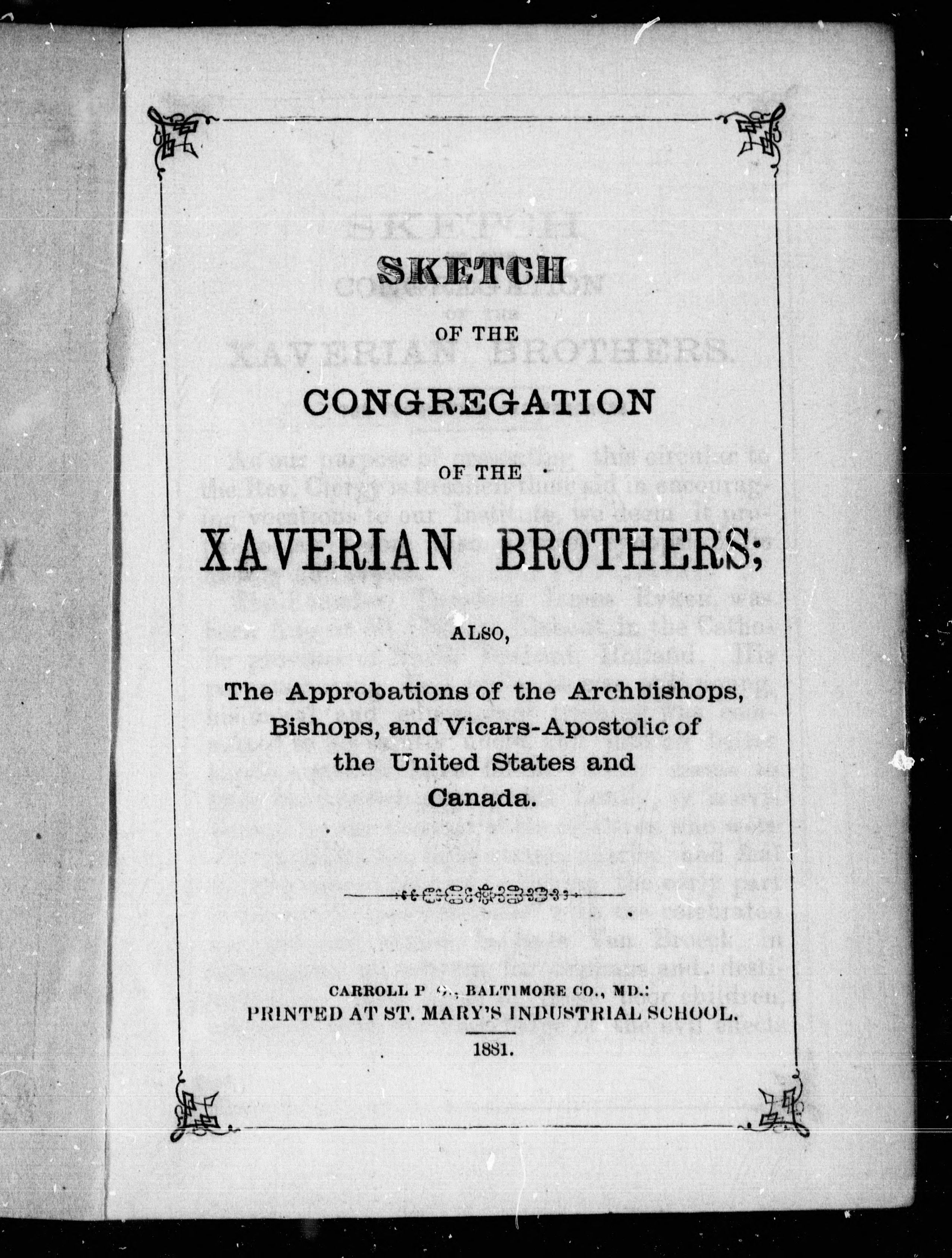 Sketch of the Congregation of the Xaverian Brothers : also, the approbations of the archbishops, bishops, and vicars-apostolic of the United States and Canada. - Adresse bibliographique