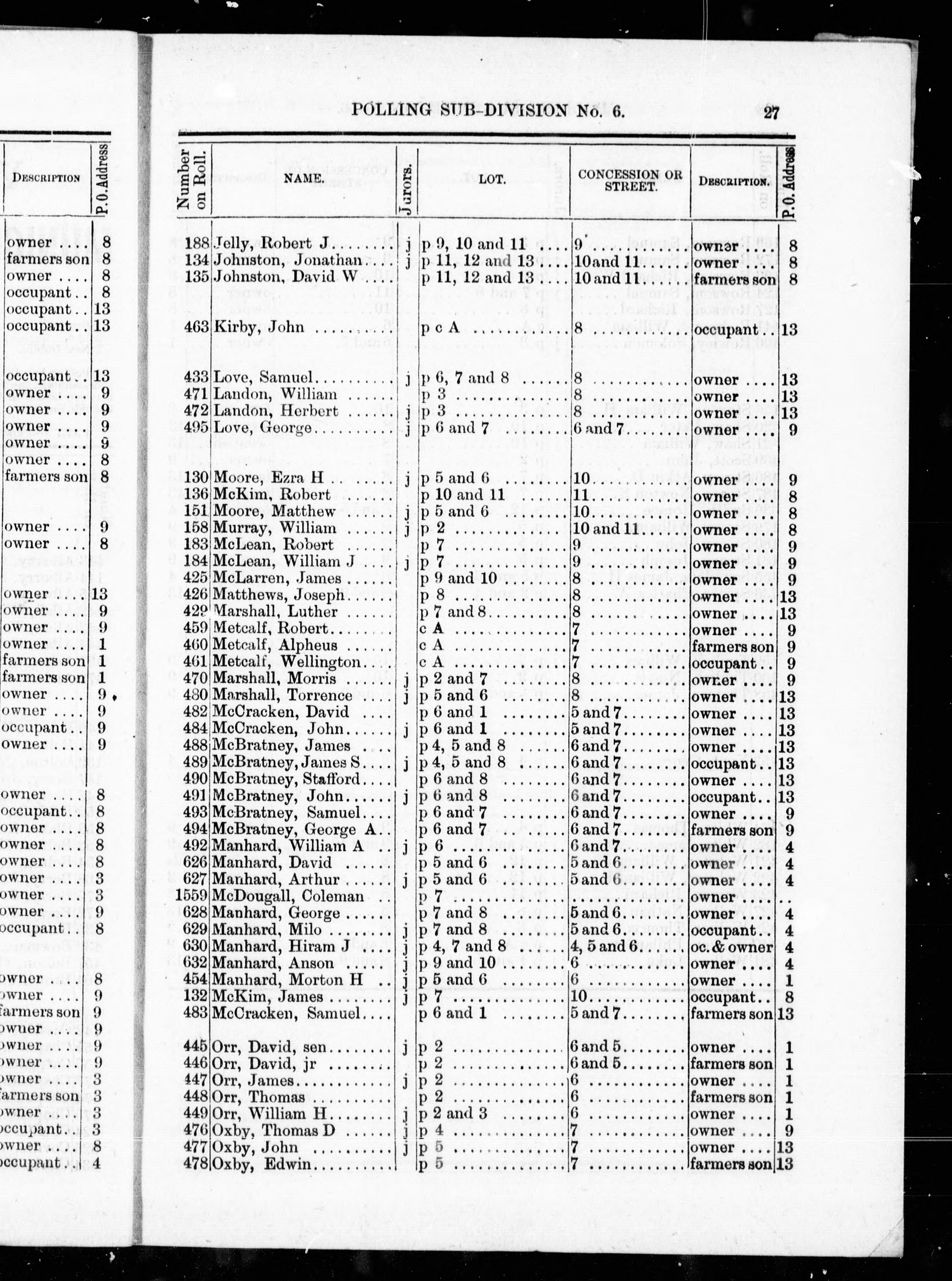 - Voters' list, 1887 : municipality of Elizabethtown.