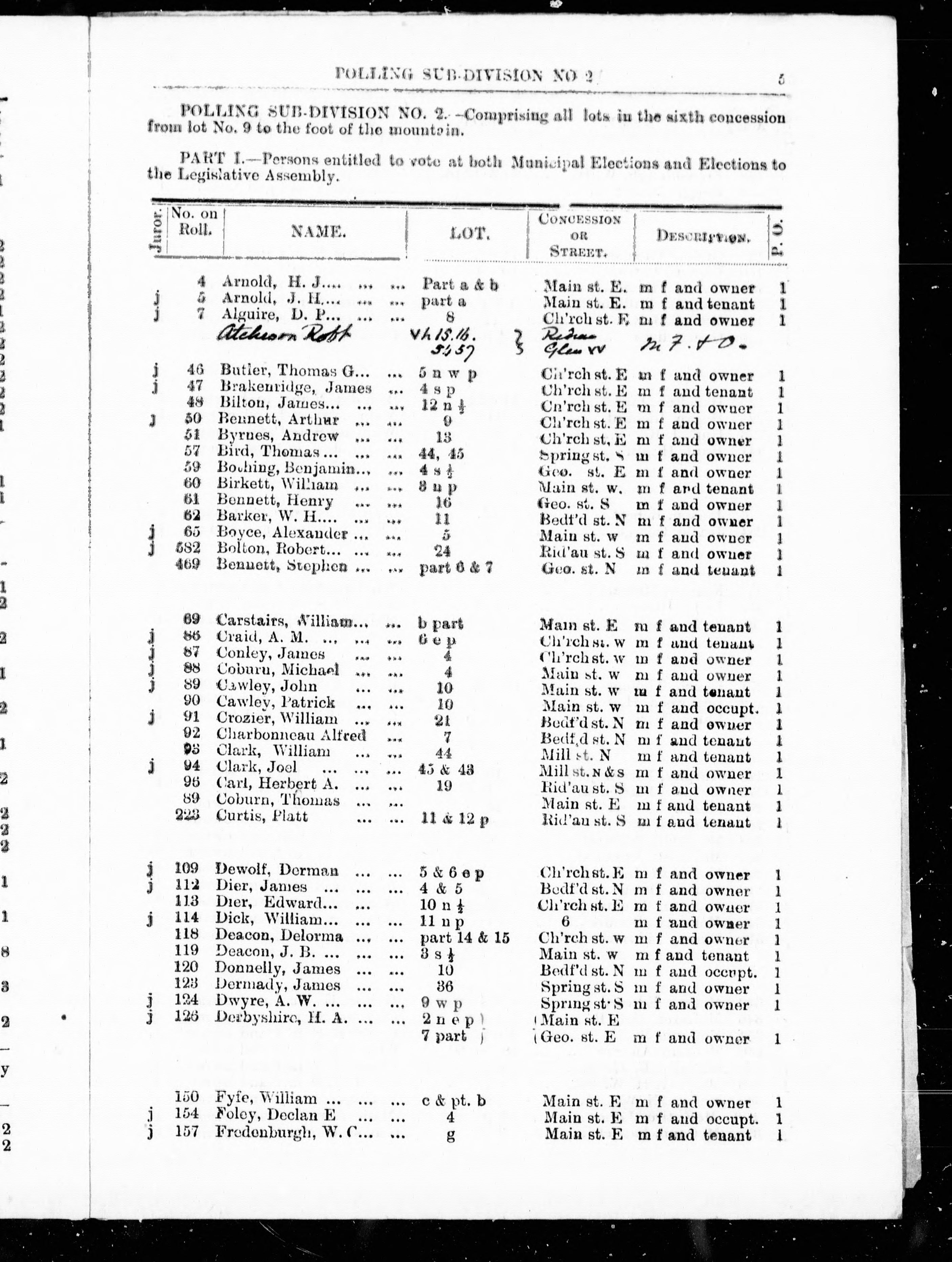 Voters' list, 1892 : municipality of the township of North Crosby.
