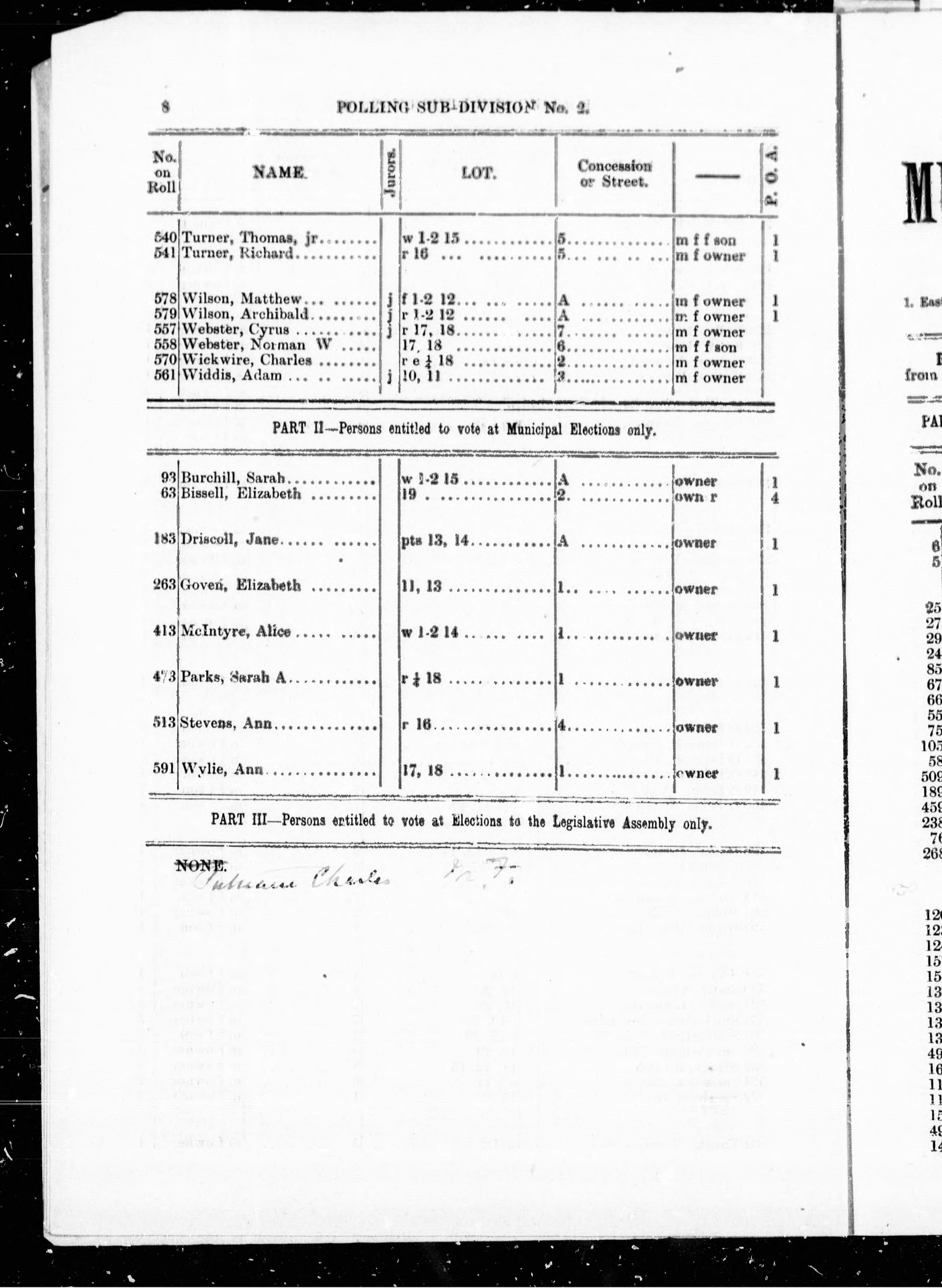 Wolford (Ont.) -- Listes électorales.
