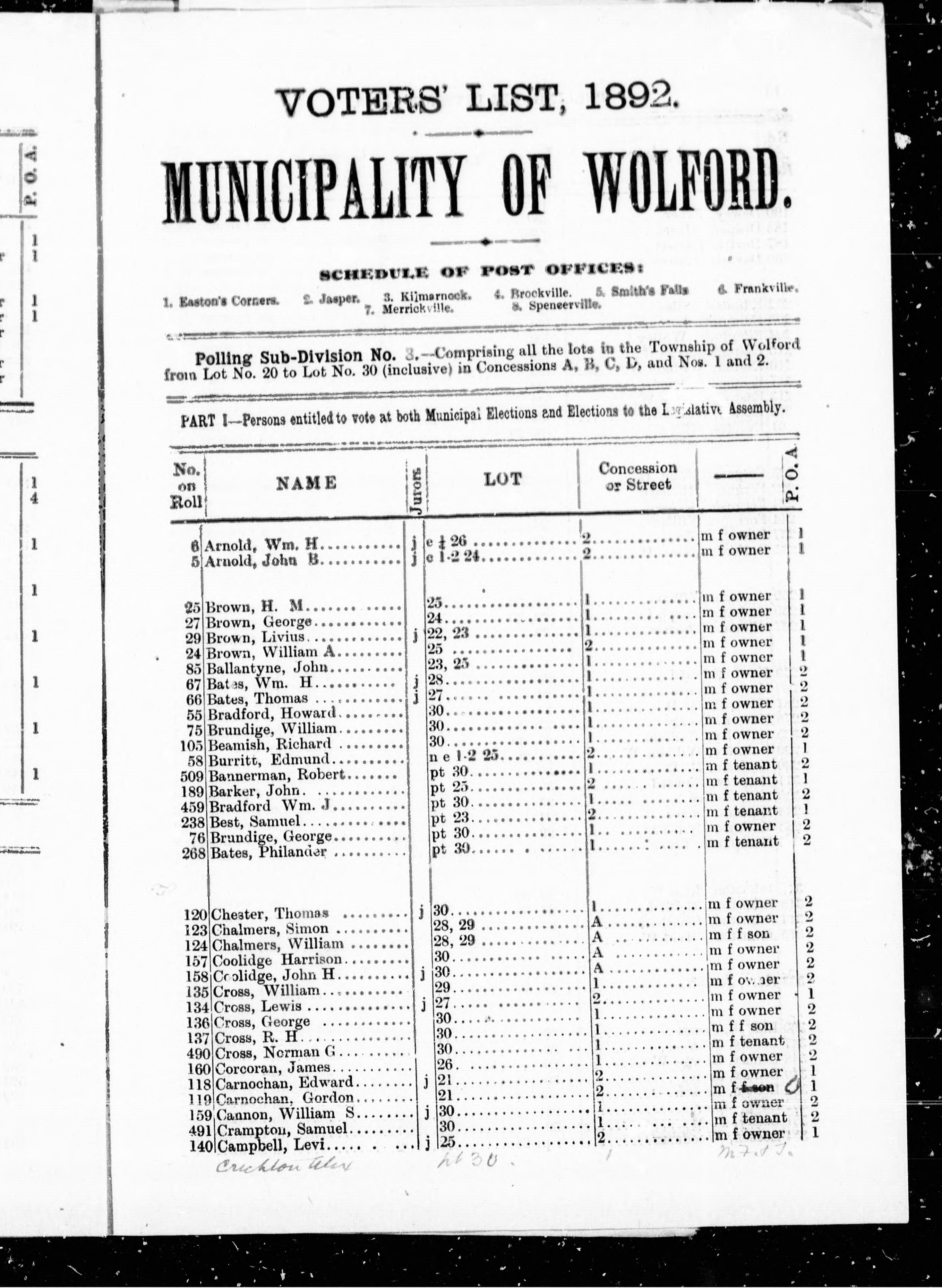 Signed and dated: H.M. Brown, Clerk of said municipality, Easton's Corners Post Office, 21st day of November, 1892.