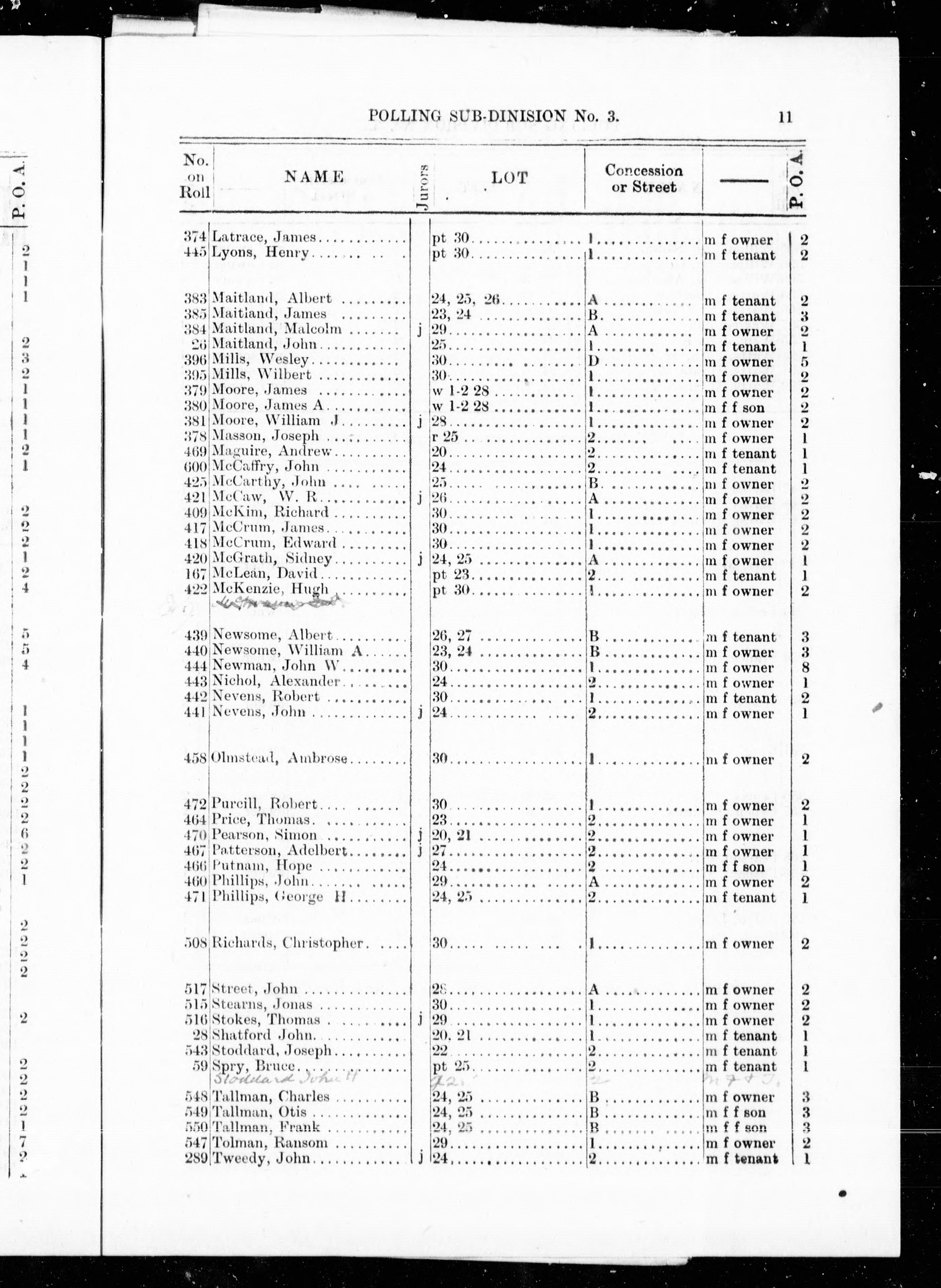 Voters' list, 1892, municipality of Wolford.