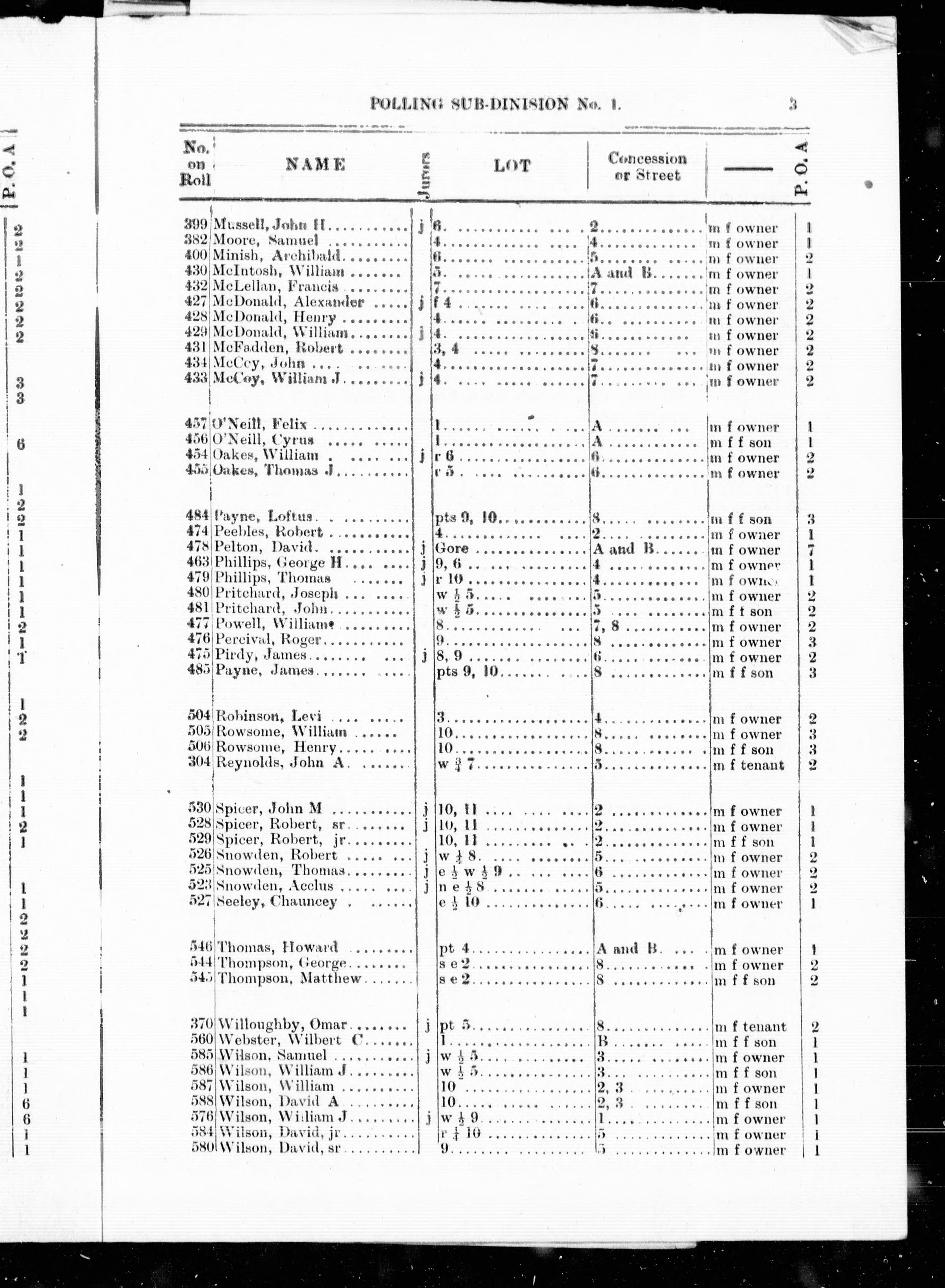 Voting registers -- Ontario -- Wolford.