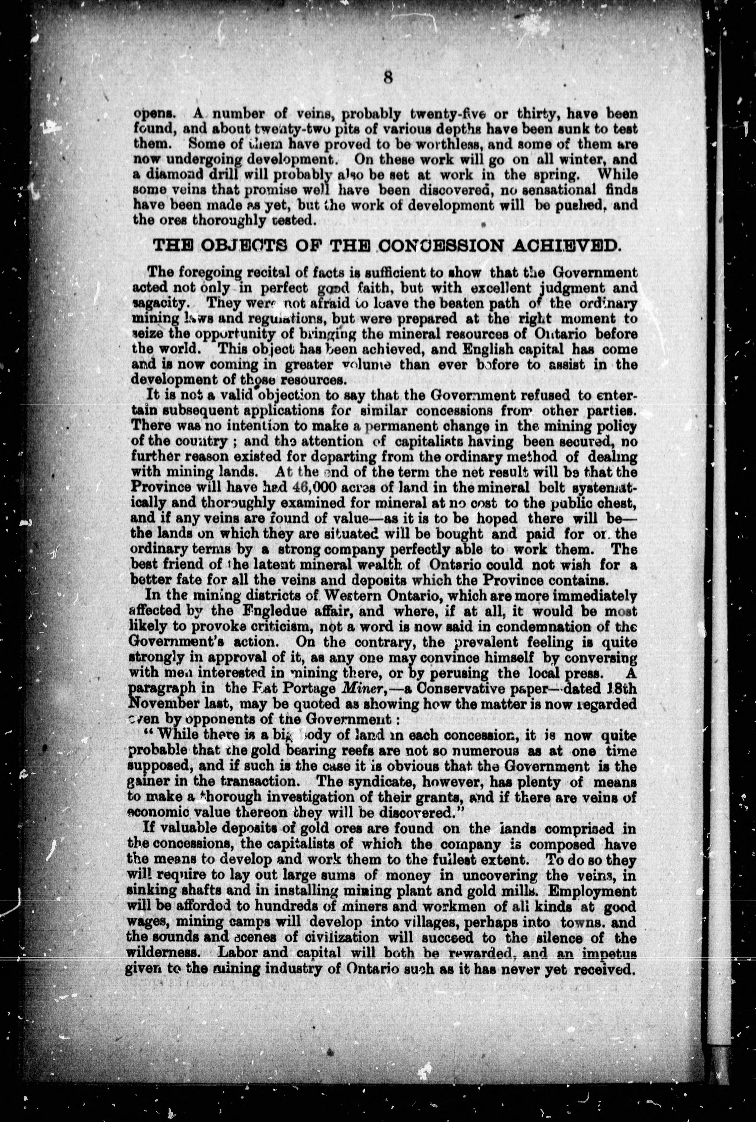 Plain facts of the Engledue mining concession.