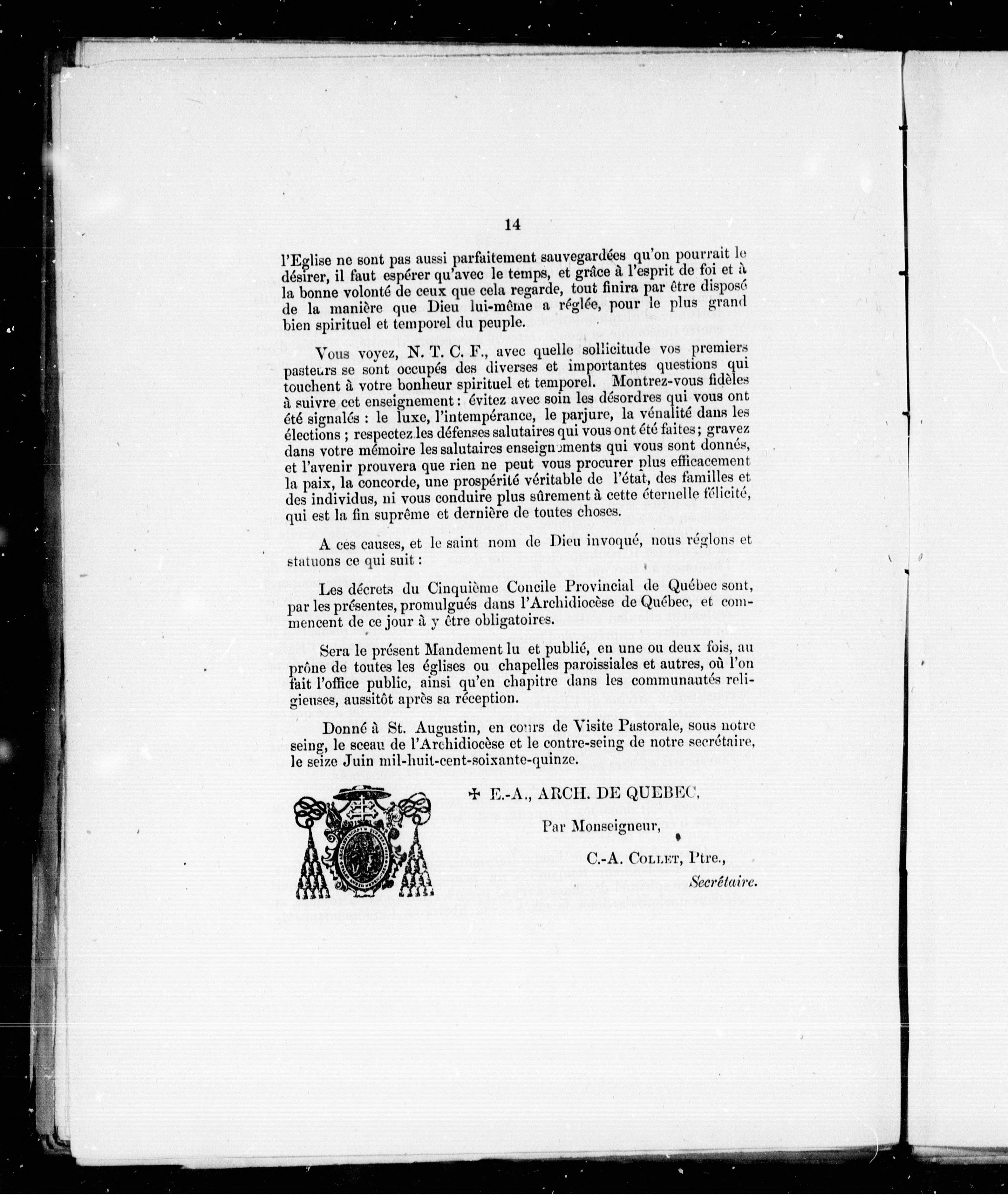 Mandement de Monseigneur E.-A. Taschereau, archevêque de Québec : promulguant les décrets du cinquième Concile provincial de Québec, 16 juin 1875. - Adresse bibliographique