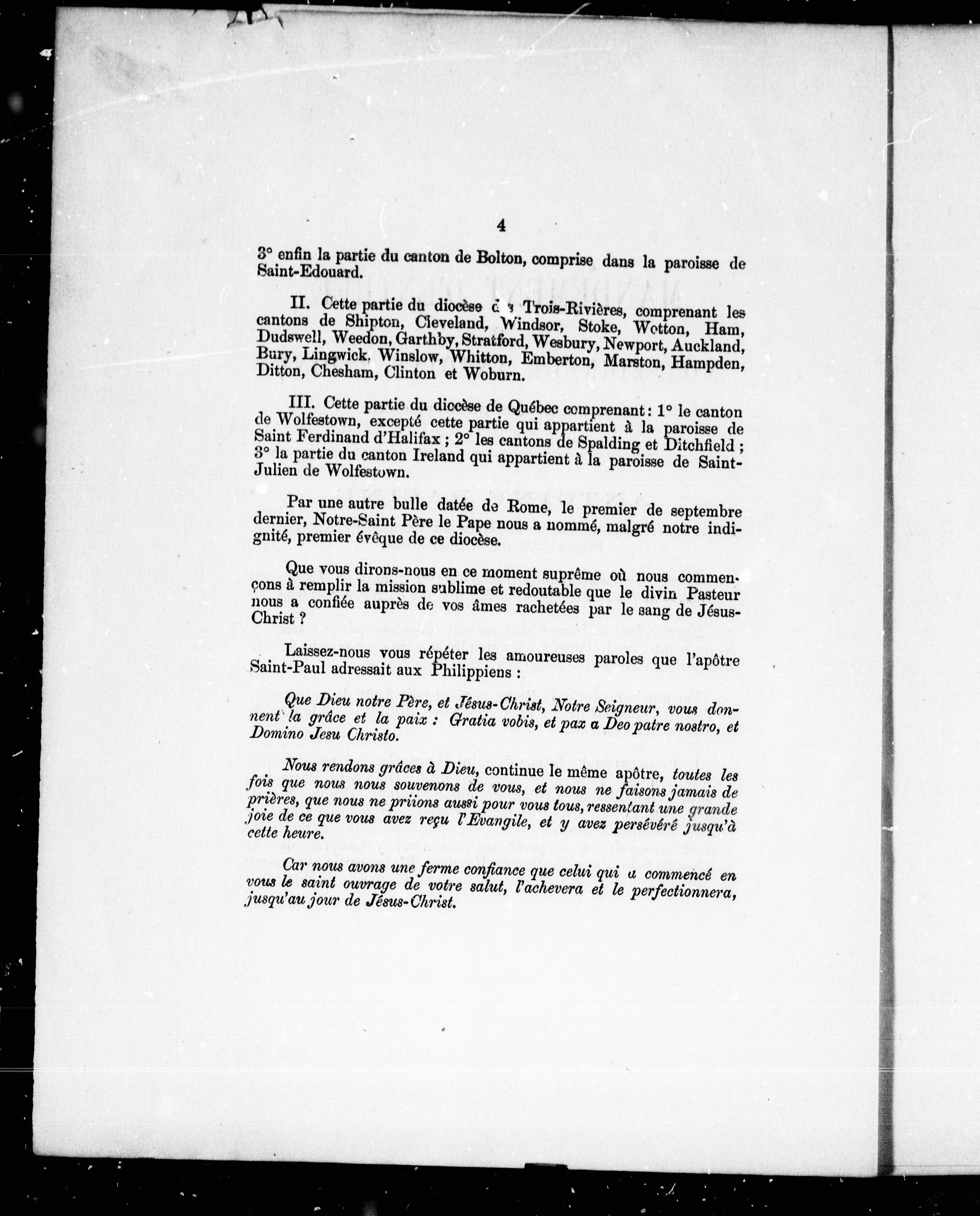 Mandement d'entrée de Monseigneur Antoine Racine premier évêque de Sherbrooke, 20 octobre 1874.