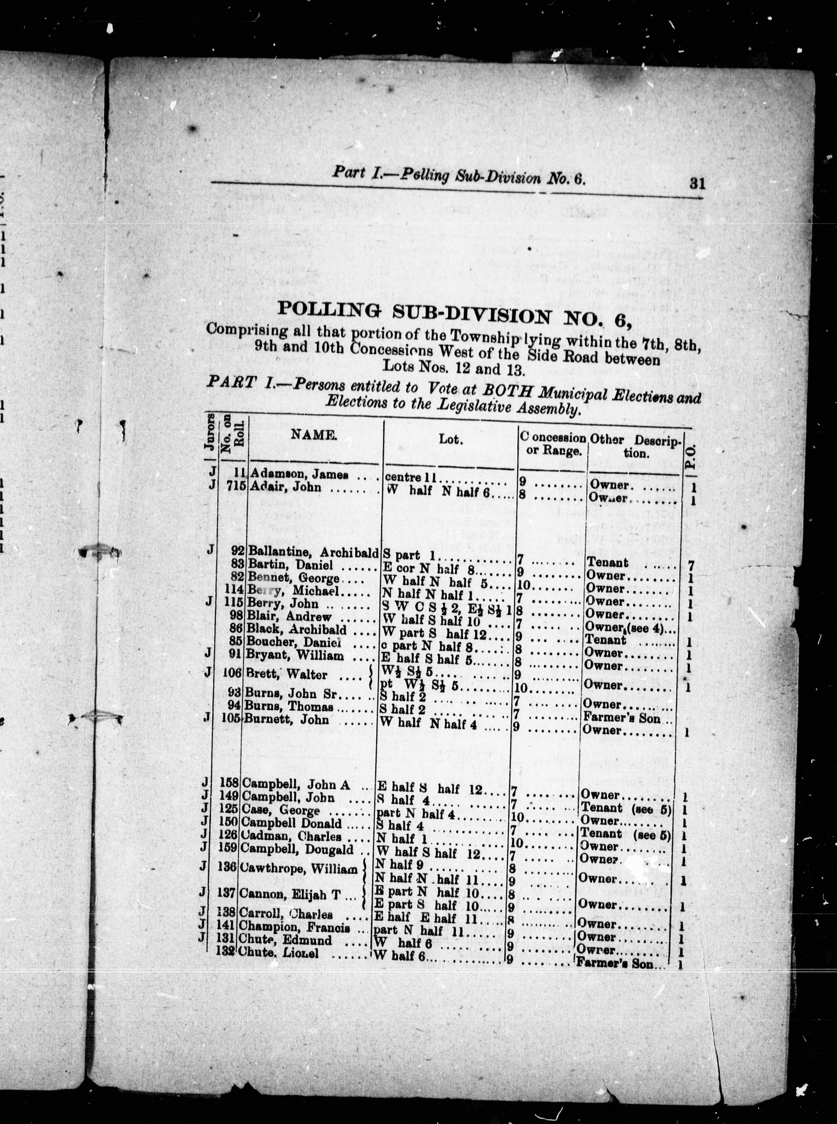 Caradoc (Ont. : Canton) -- Listes électorales. - Document original