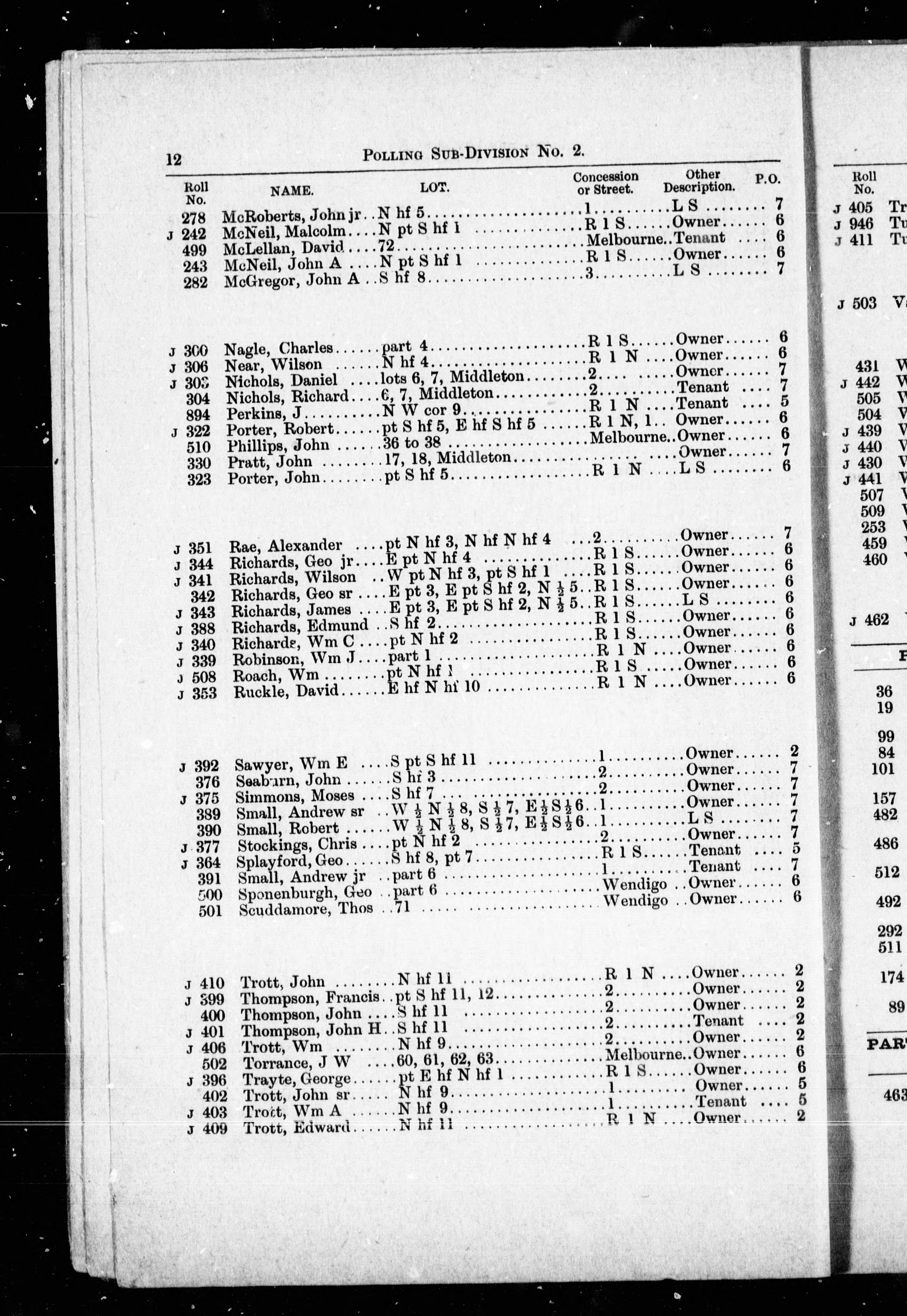 Caradoc (Ont. : Canton) -- Listes électorales.