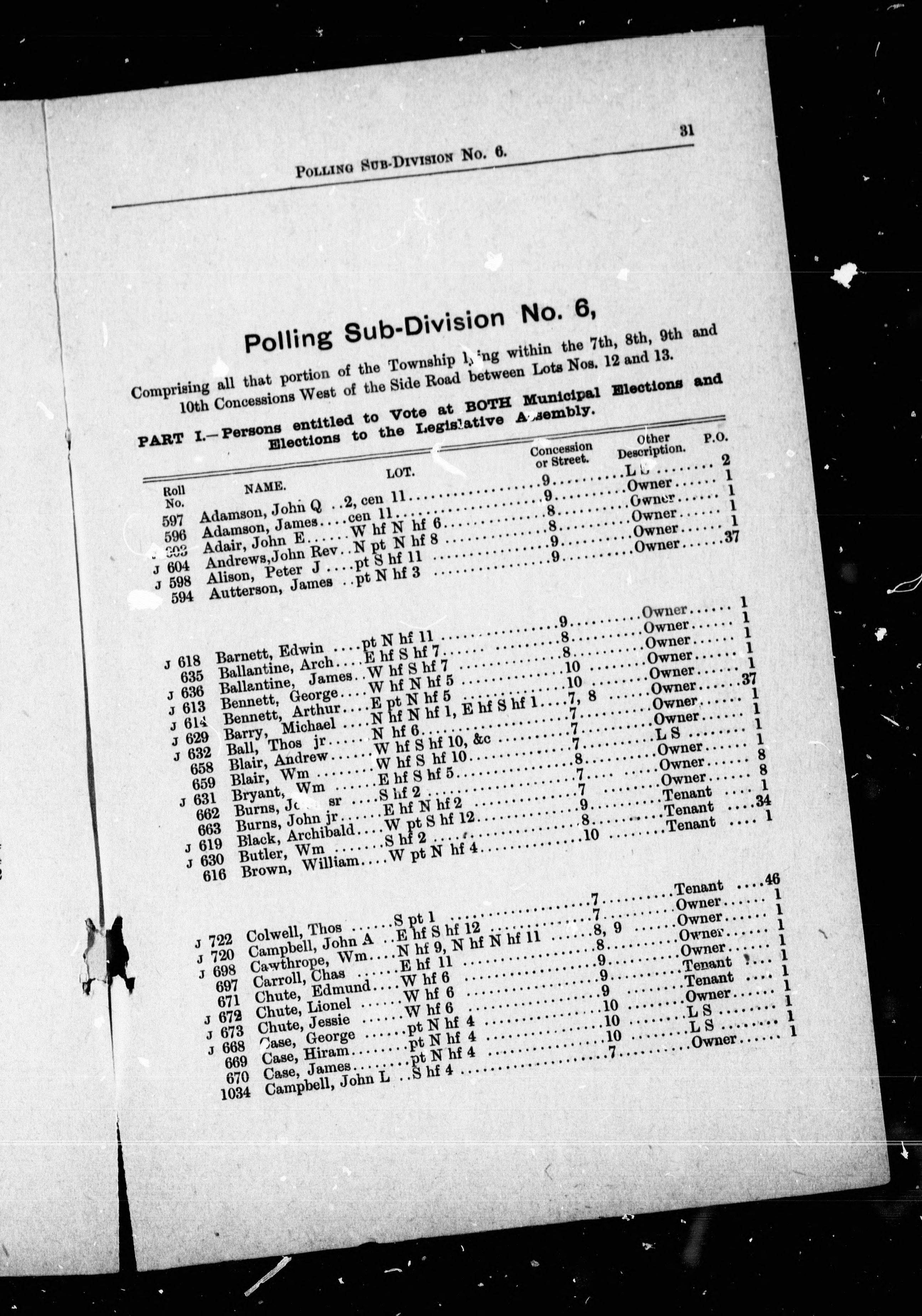 Caradoc (Ont. : Canton) -- Listes électorales.