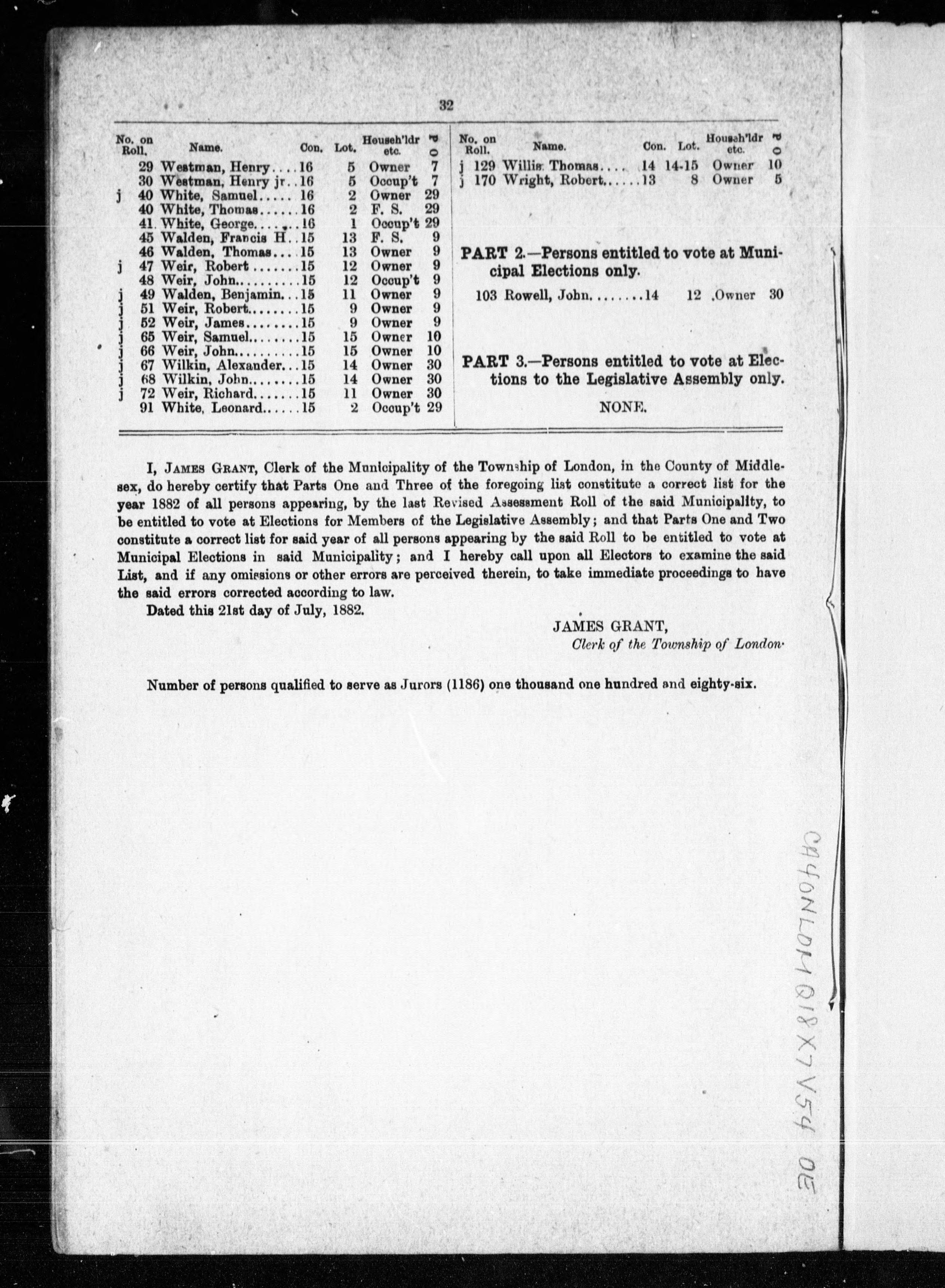London (Ont. : Canton) -- Listes électorales. - Document original