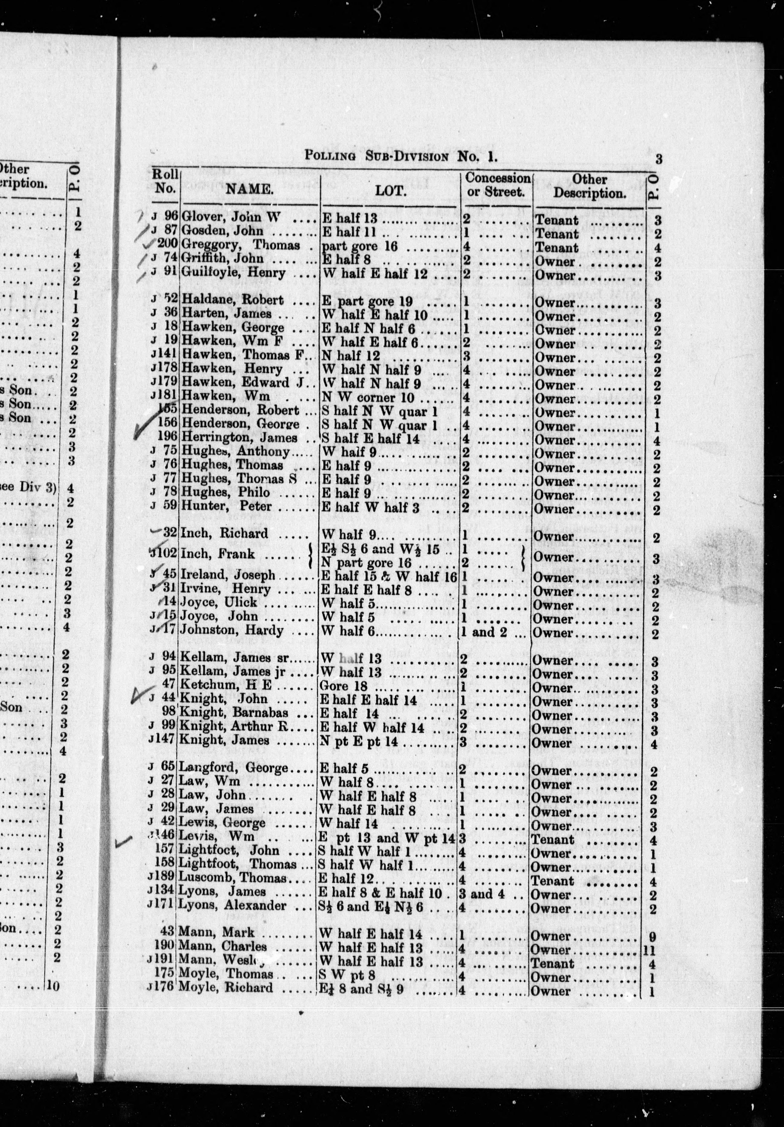 Metcalfe (Ont. : Canton) -- Listes électorales.