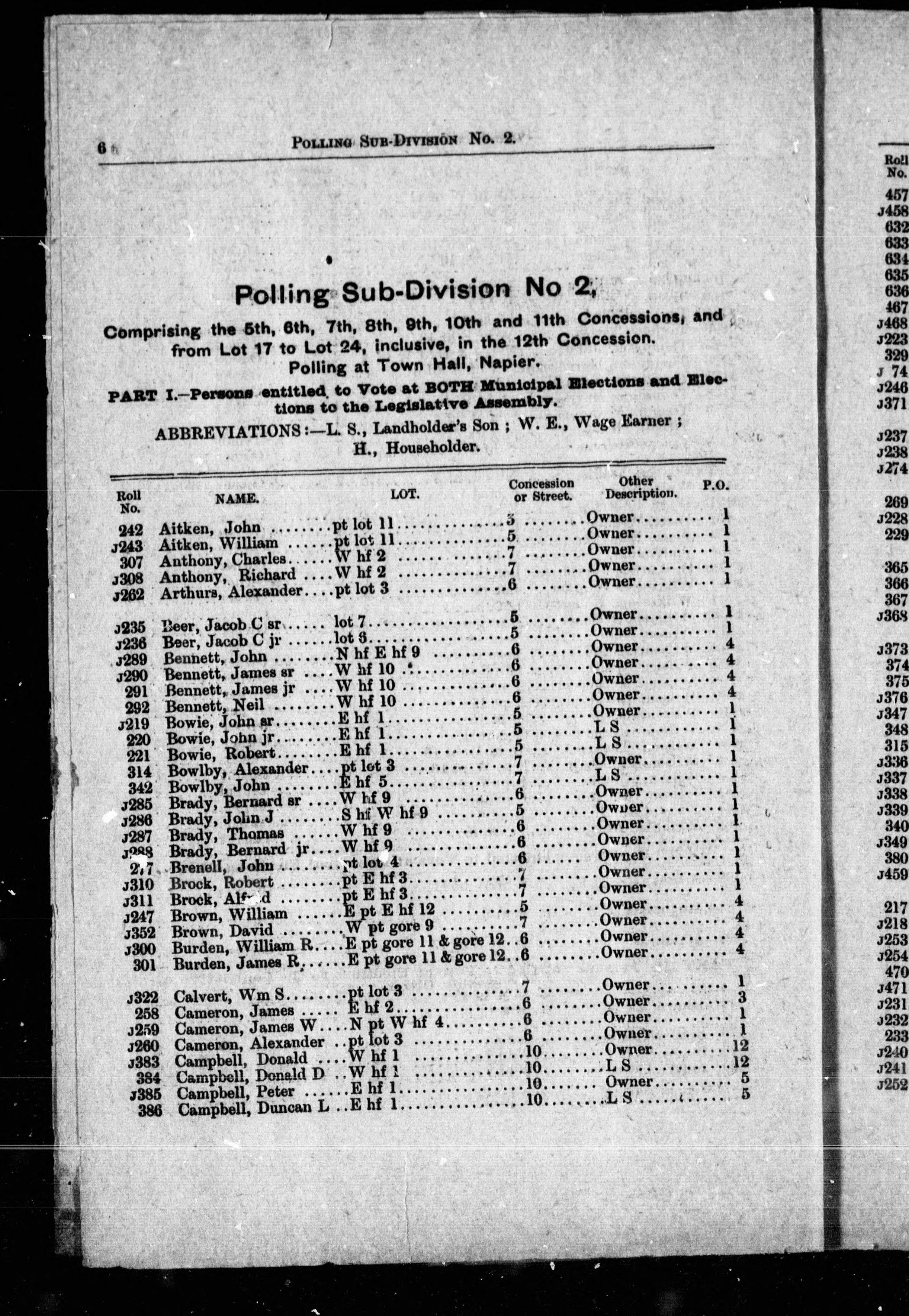 Metcalfe (Ont. : Canton) -- Listes électorales. - Document original
