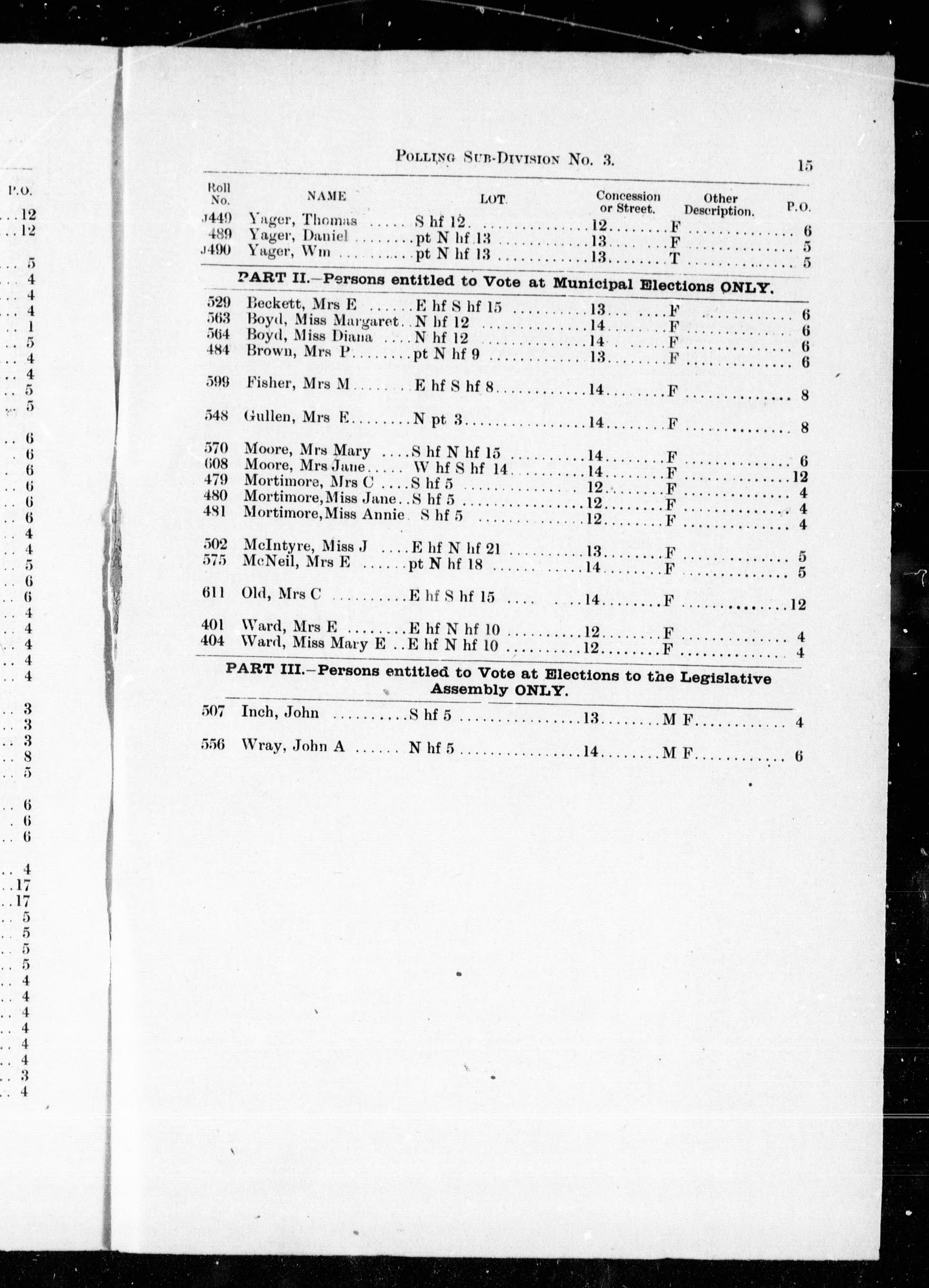 Metcalfe (Ont. : Canton) -- Listes électorales.