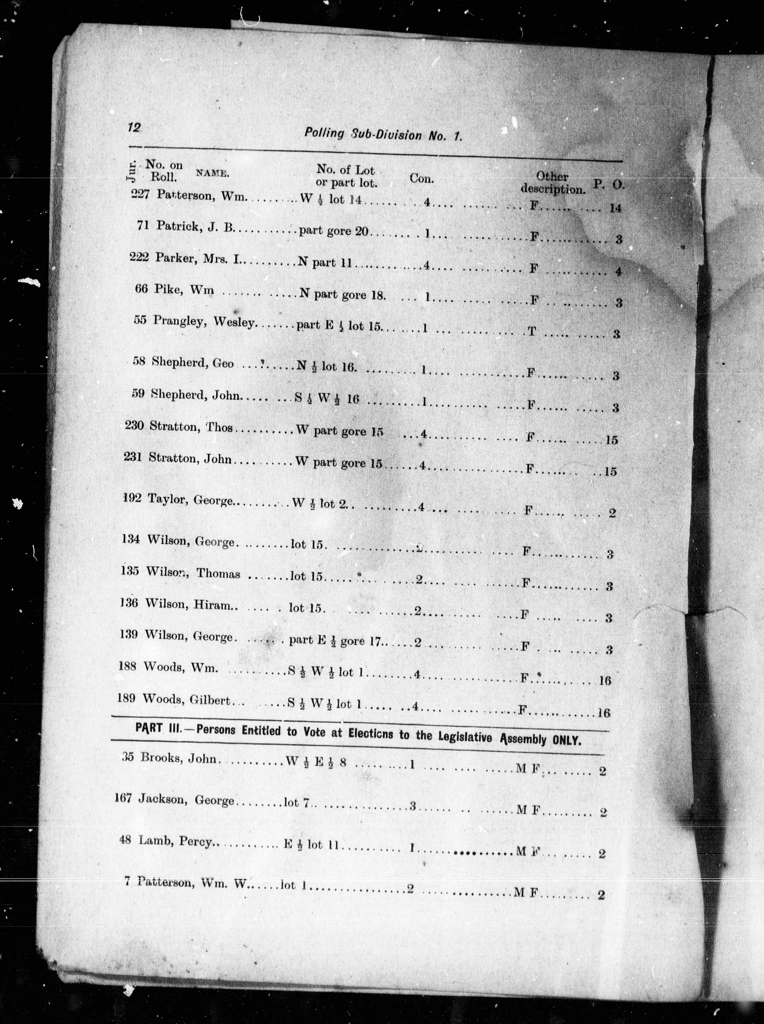 - List of voters for the township of Metcalfe for the year 1894.
