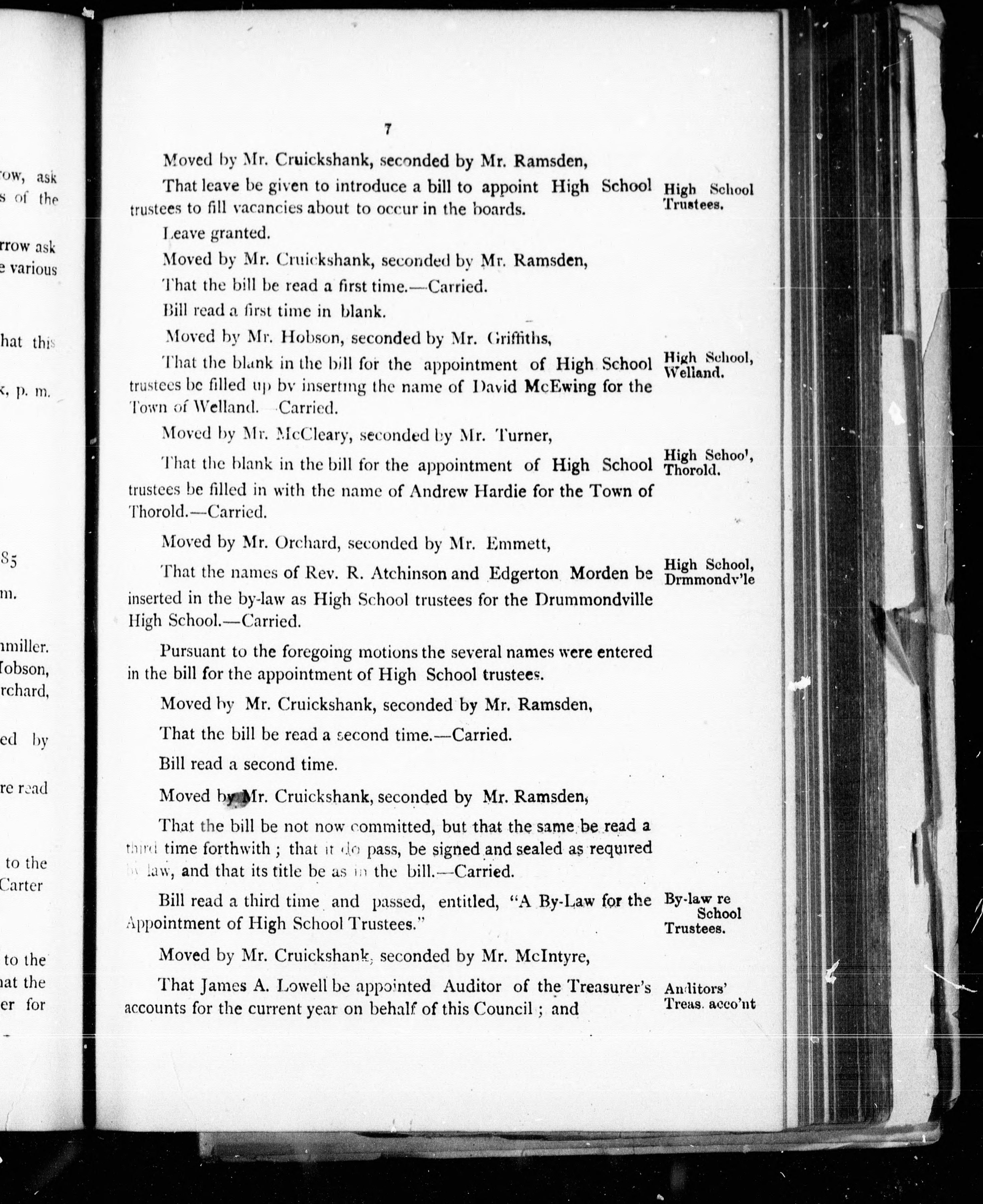 Proceedings of the Municipal Council of the County of Welland : January session, 1885, C. Riselay, Esq., warden. - Adresse bibliographique