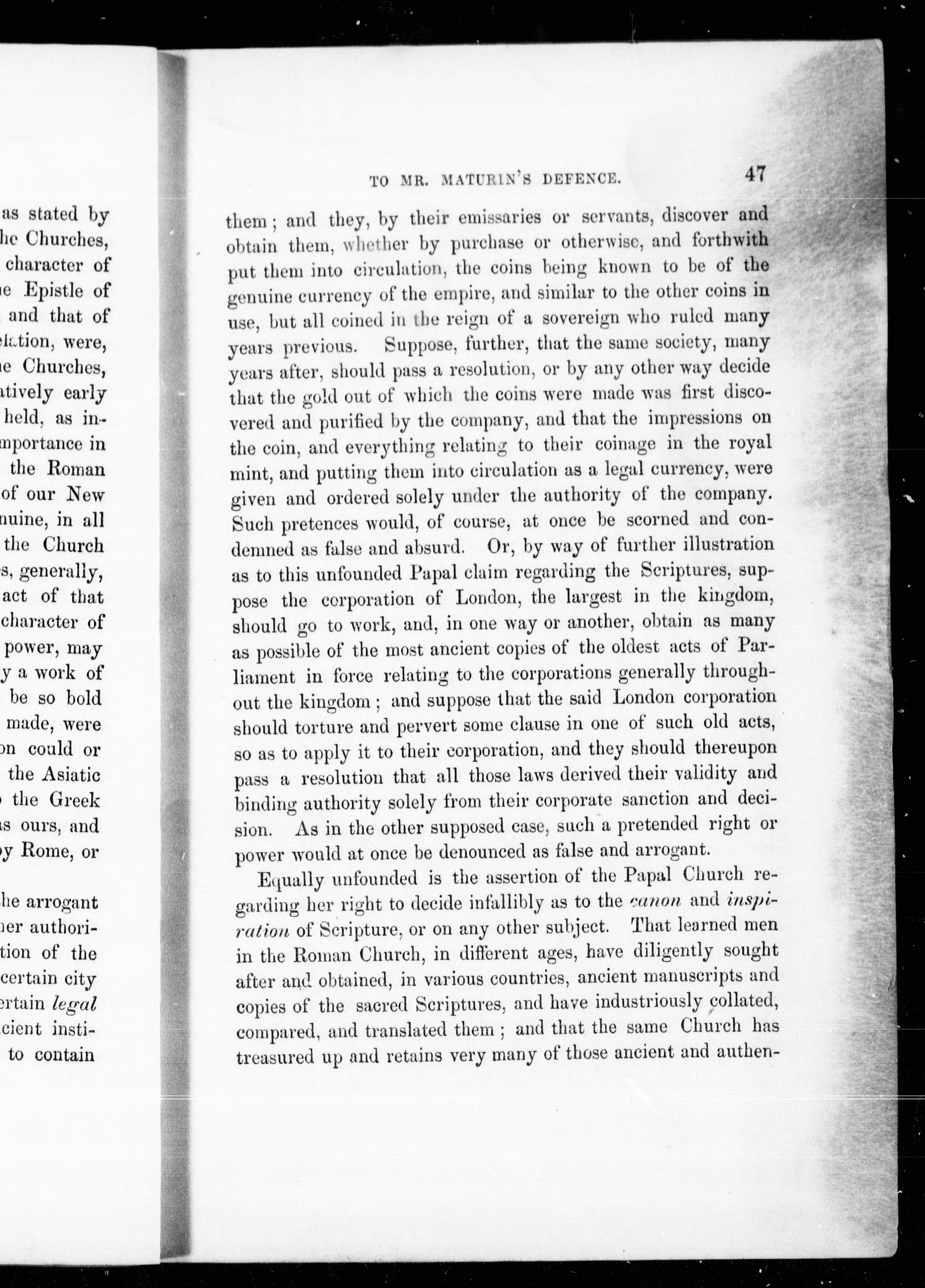 - A protestant's answer to part I of Mr. Edmund Maturin's "Defence of The claims of the Catholic Church"