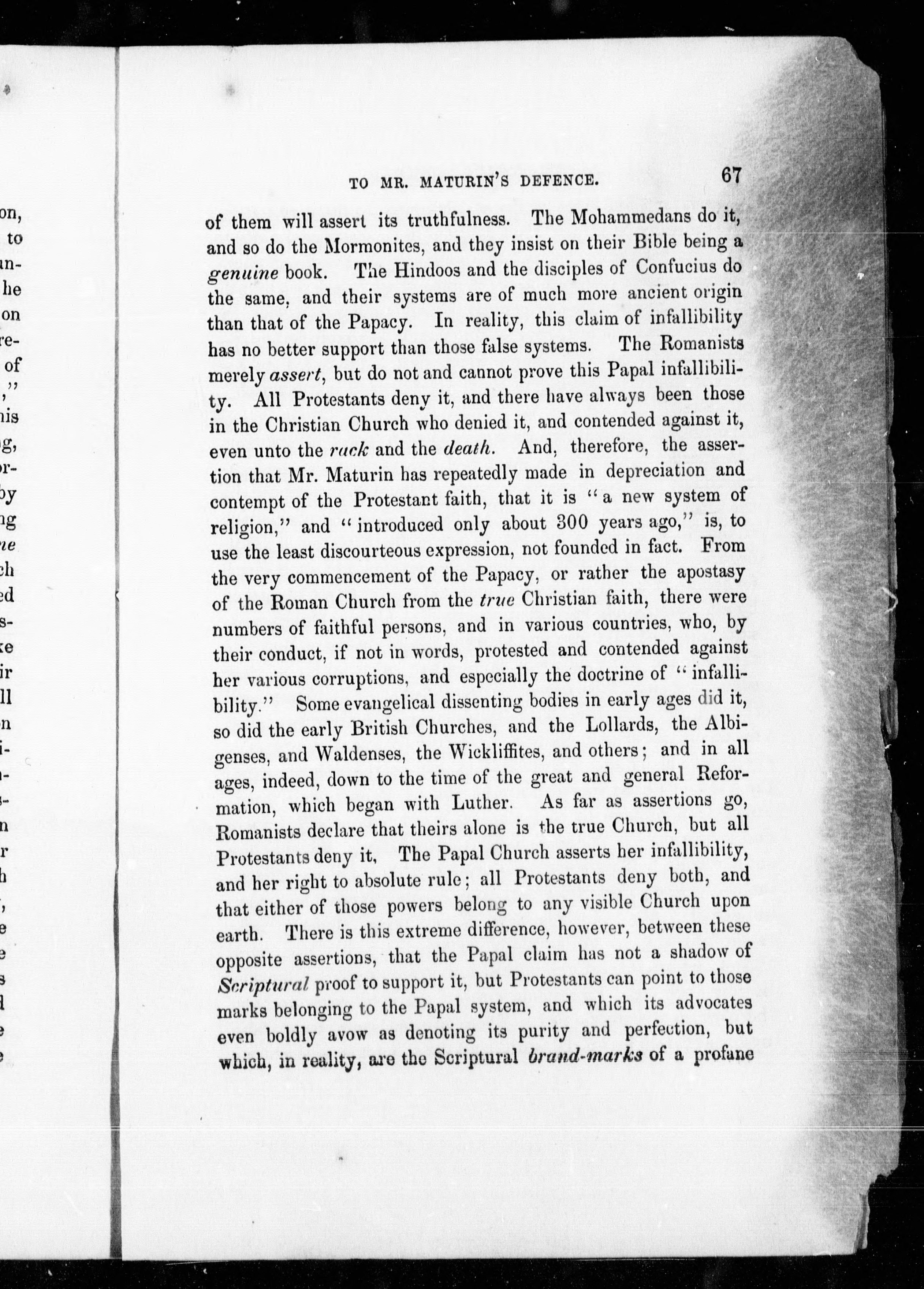 - A protestant's answer to part I of Mr. Edmund Maturin's "Defence of The claims of the Catholic Church"