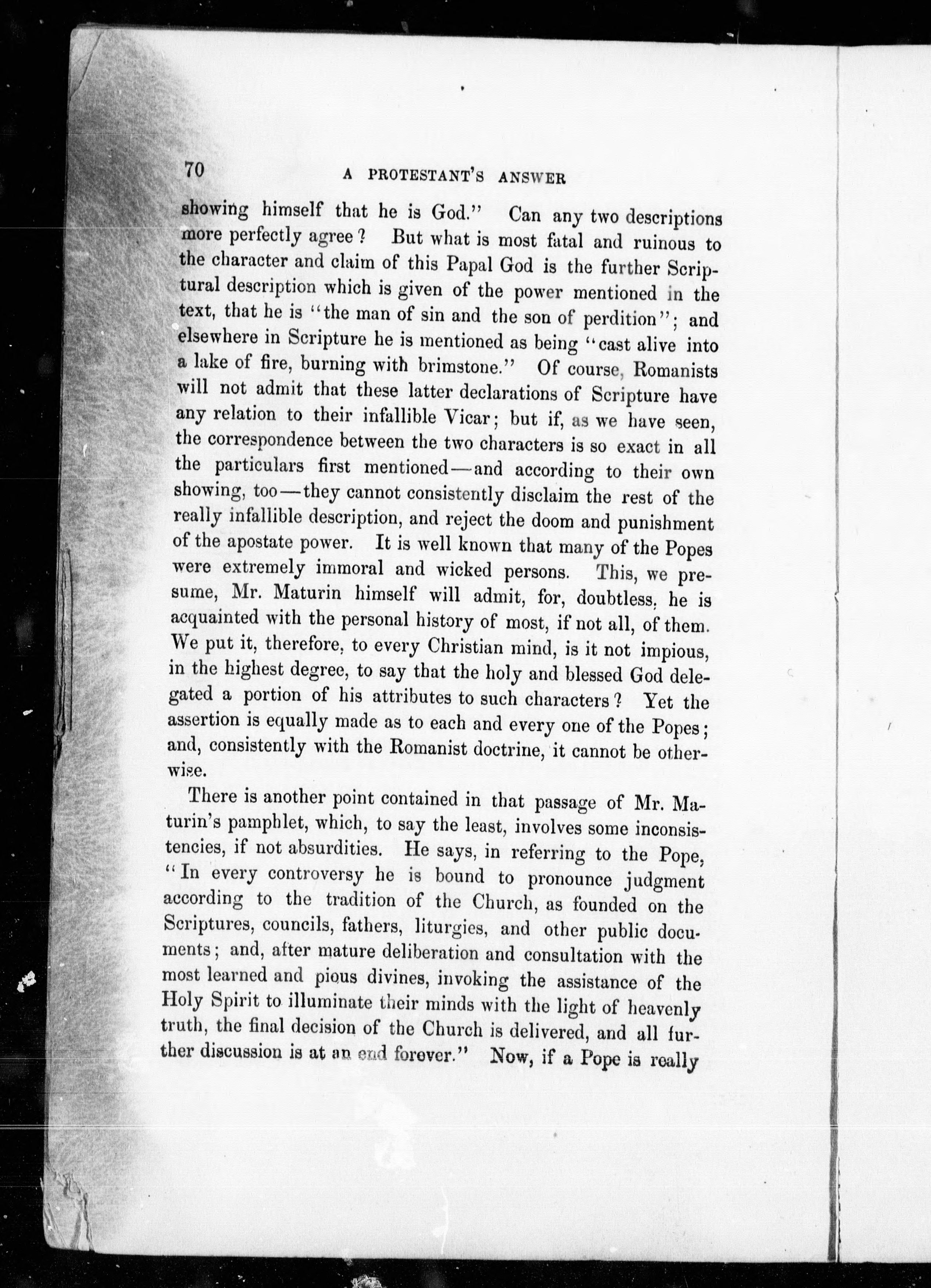- A protestant's answer to part I of Mr. Edmund Maturin's "Defence of The claims of the Catholic Church"