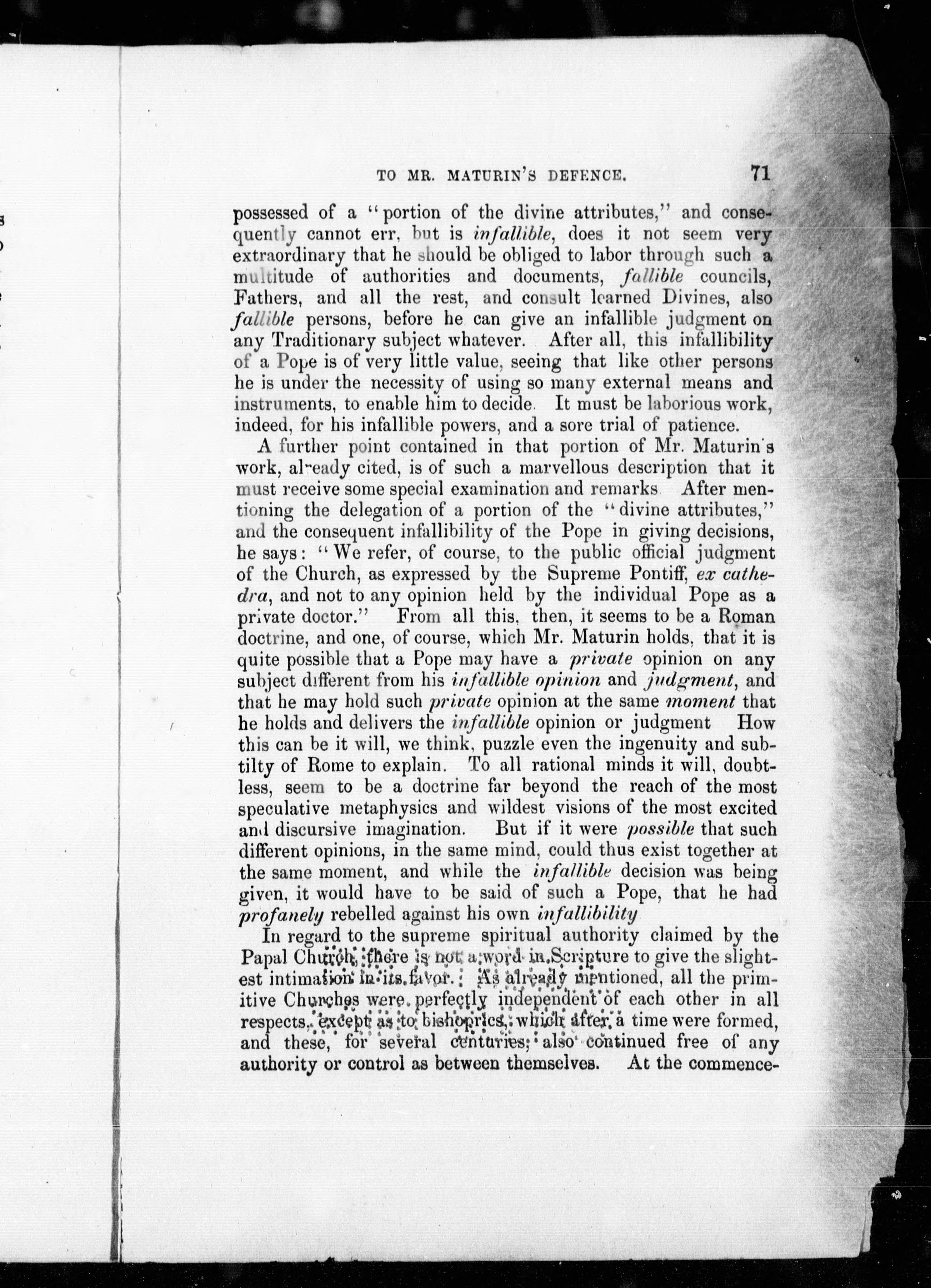 - A protestant's answer to part I of Mr. Edmund Maturin's "Defence of The claims of the Catholic Church"