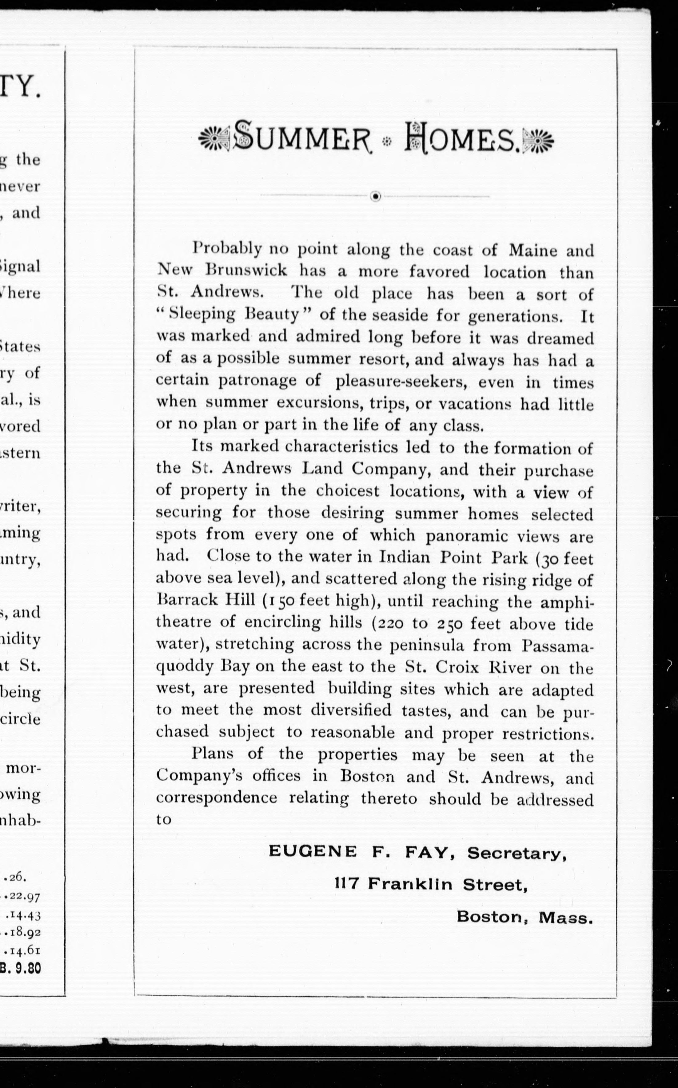 Stations d'été -- Nouveau-Brunswick -- St. Andrews.