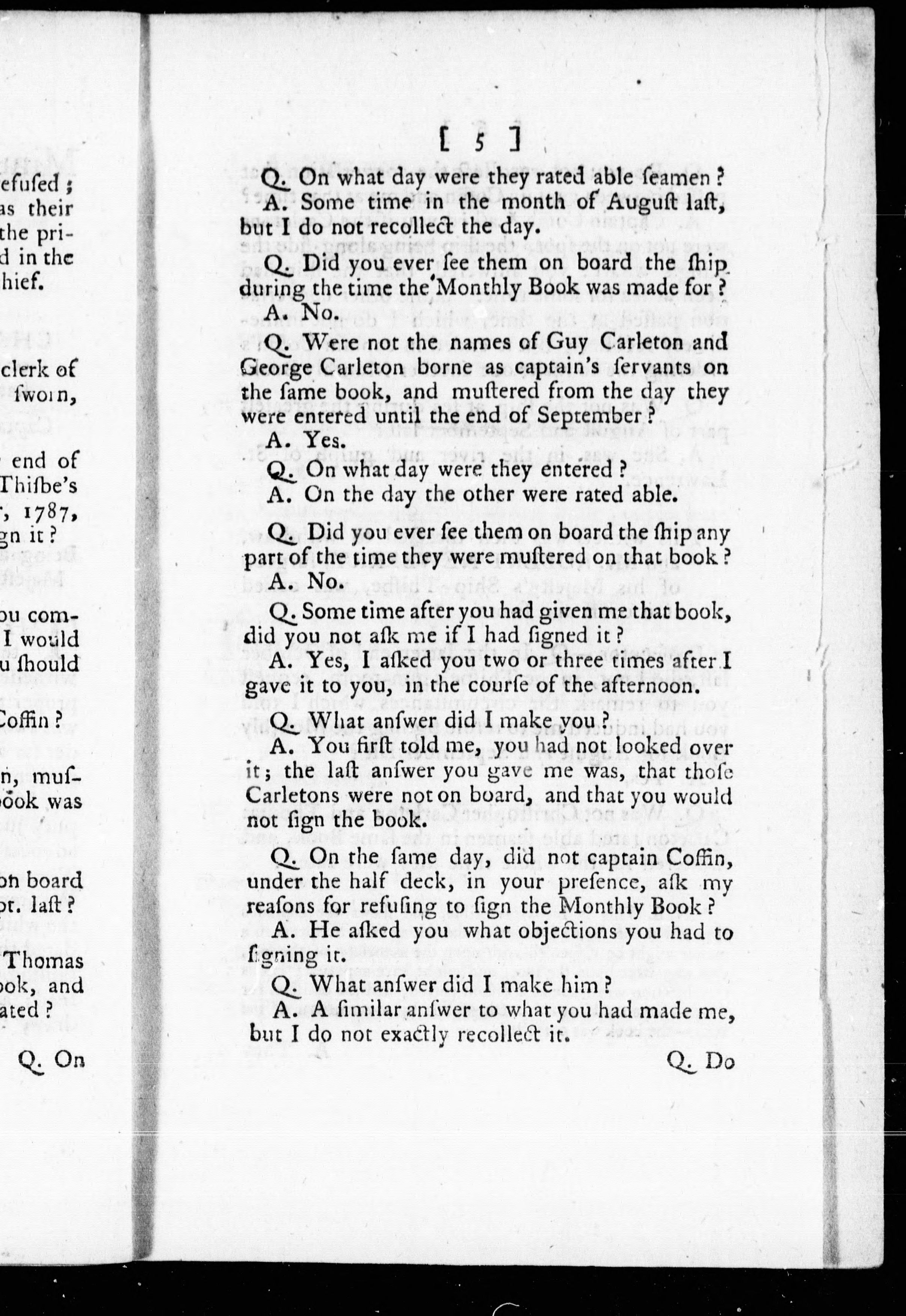 - Minutes of a court martial, assembled and held on board His Majesty's ship Dido, in Halifax harbour, Nova Scotia, the 21st day of May, and by adjournment until the 23d day of May, 1788 : in pursuance of an order from Herbert Sawyer, Esq. ... to try Isaac Coffin, Esq., captain of His Majesty's ship the Thigbe, on a charge exhibited against him by Mr. Tho. Huchenson Wynter, master of the said ship, for false mustersin several instances on the said ship's books : with the minute of the Boardof Admiralty and Captain Coffin's memorial, presented to the Lords of the Admiralty.