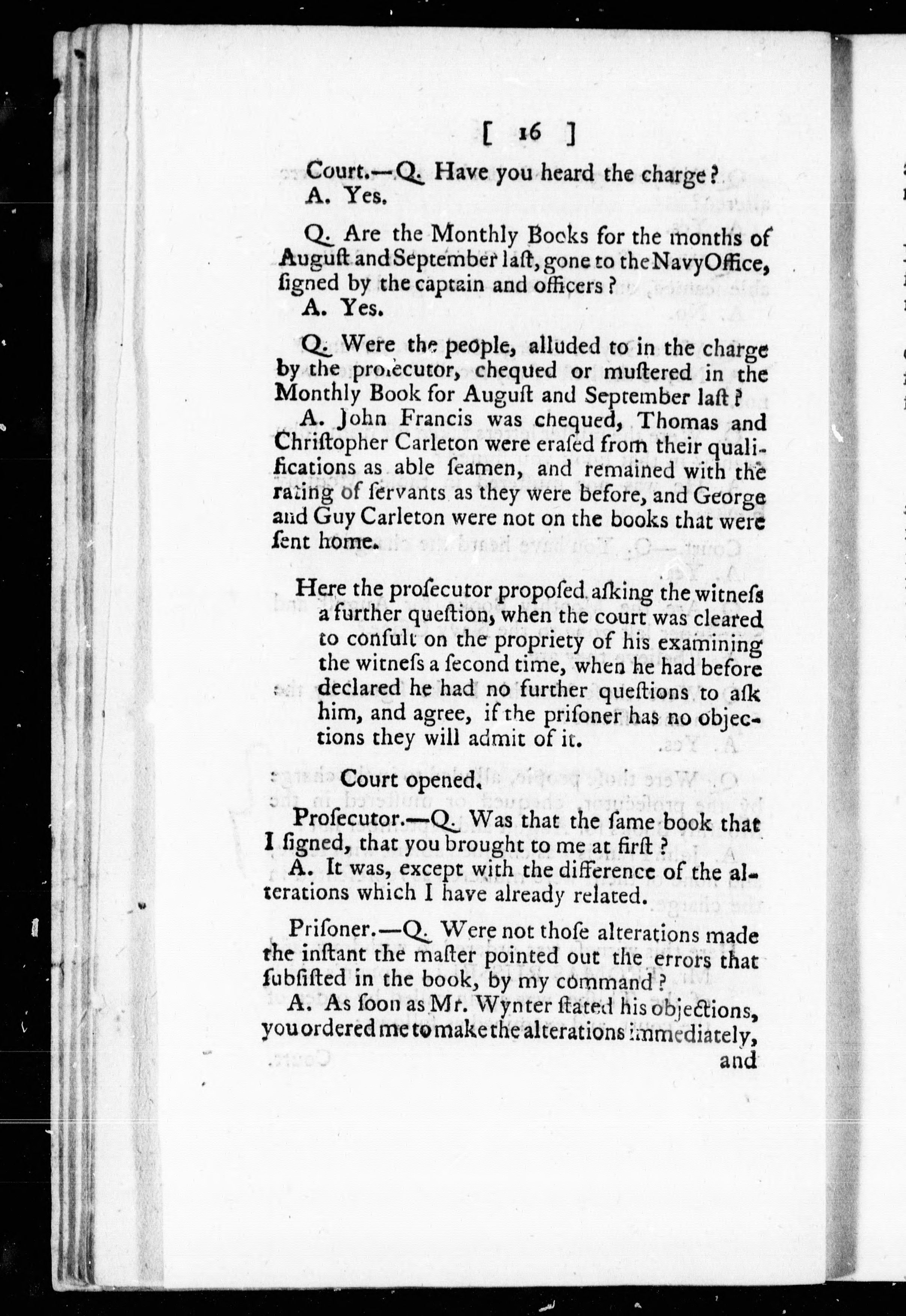 Minutes of a court martial, assembled and held on board His Majesty's ship Dido, in Halifax harbour, Nova Scotia, the 21st day of May, and by adjournment until the 23d day of May, 1788 :