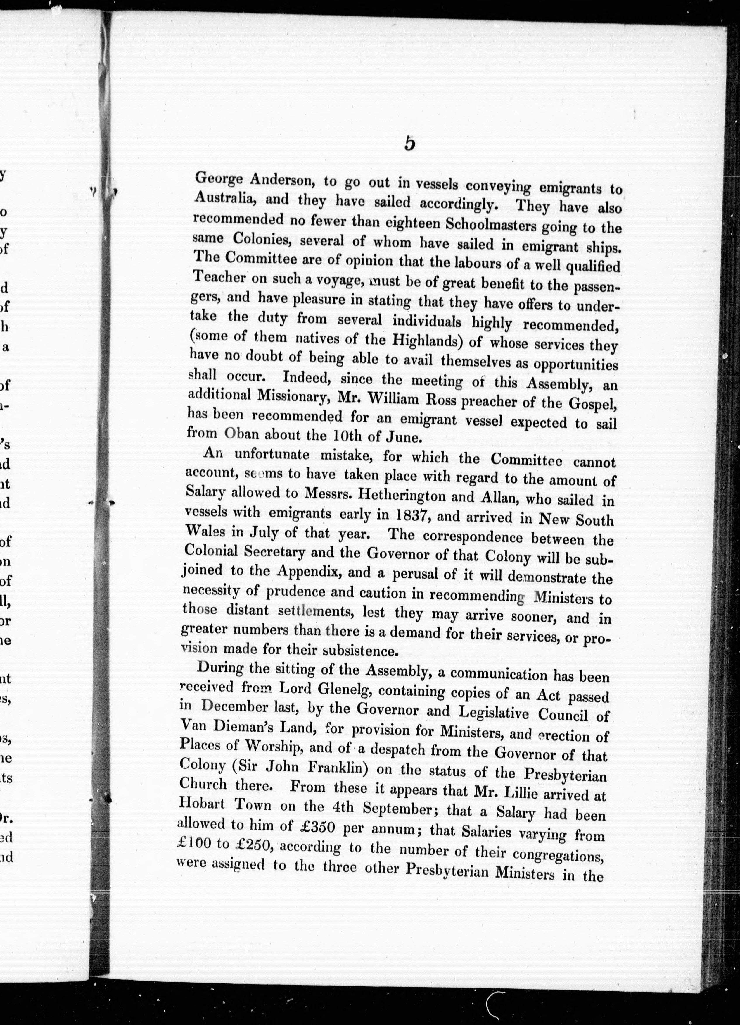 Report of Committee of General Assembly on Colonial Churches, 28th May 1838, and deliverance of the Assembly :