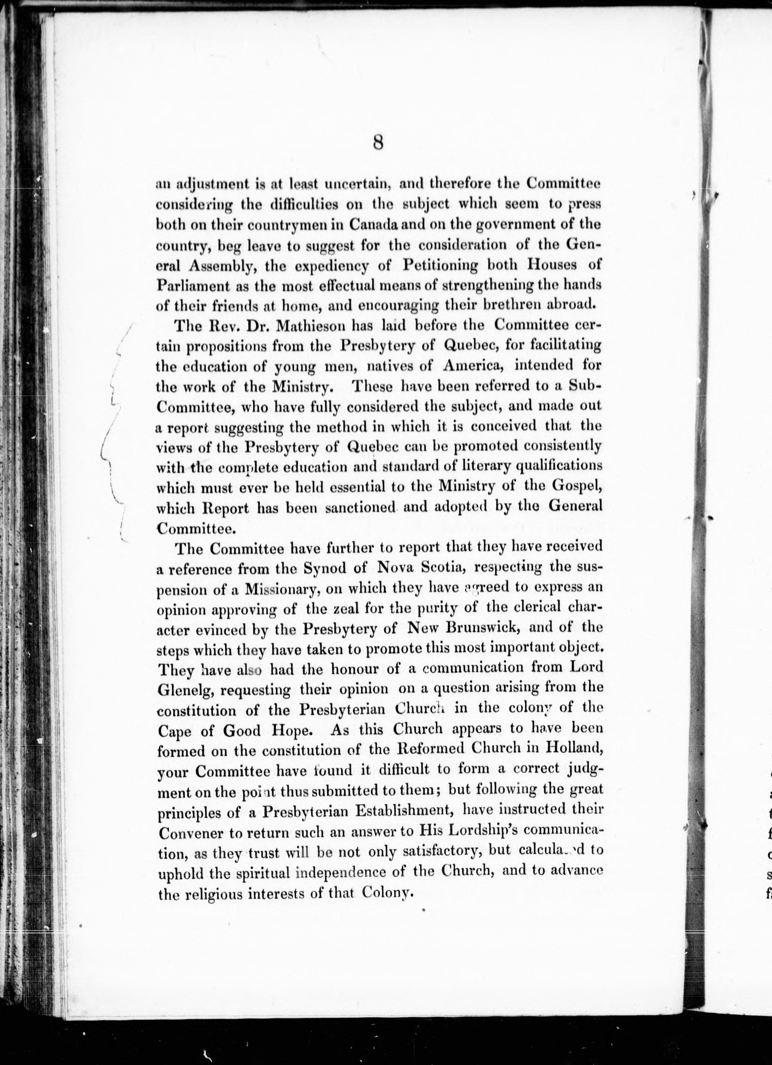 Report of Committee of General Assembly on Colonial Churches, 28th May 1838, and deliverance of the Assembly :