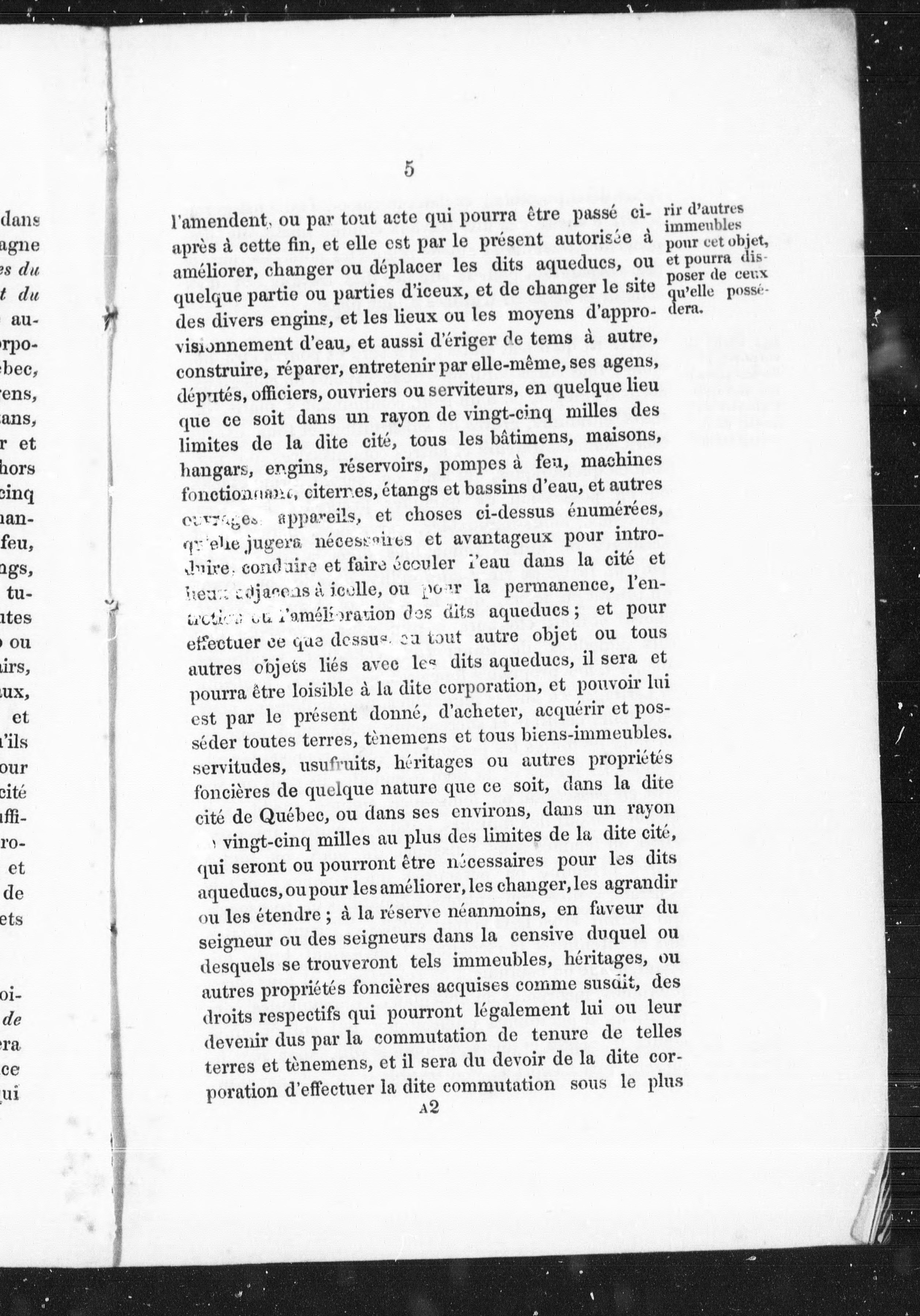 Comprend: Acte pour amender un acte pour fournir de l'eau à la cité de Québec et aux lieux environnans.