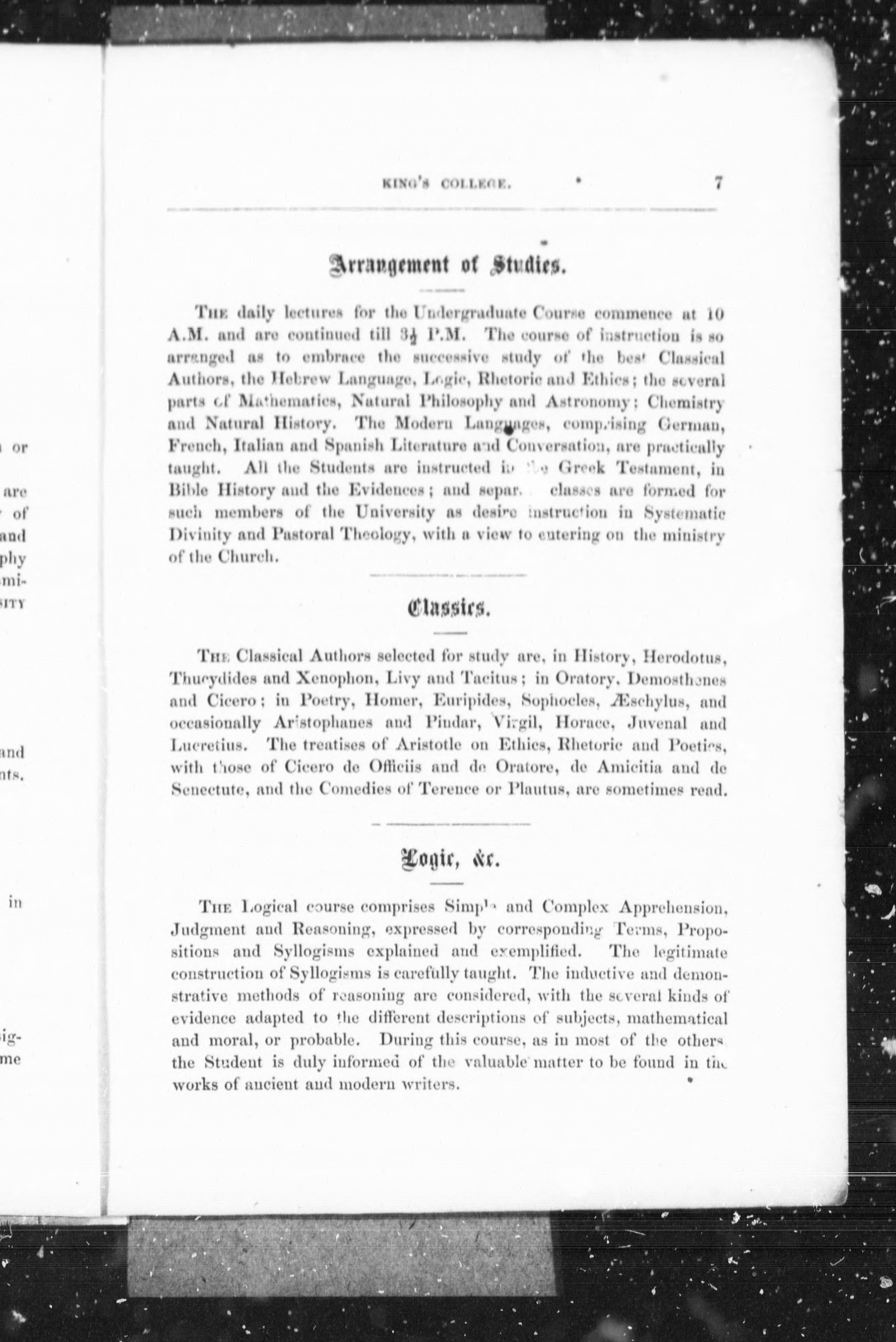 Synopsis : University of King's College, Nova Scotia.