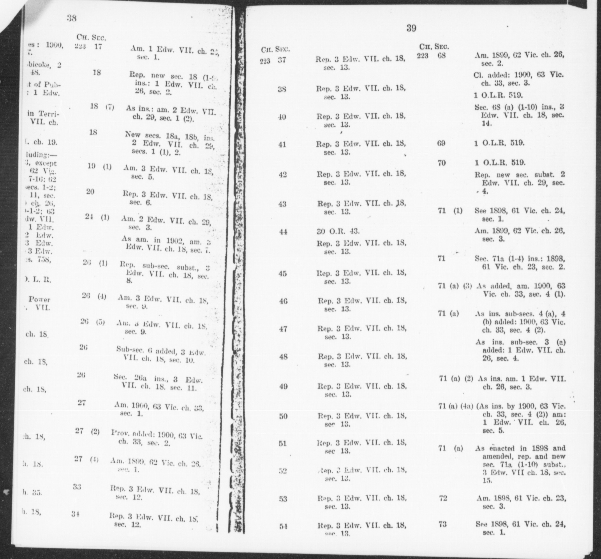 Marginal annotations to the revised statutes of Ontario 1897 : providing in brief form references to each amendment or other change made by subsequent statutes, and also to every reported case affecting the statutes