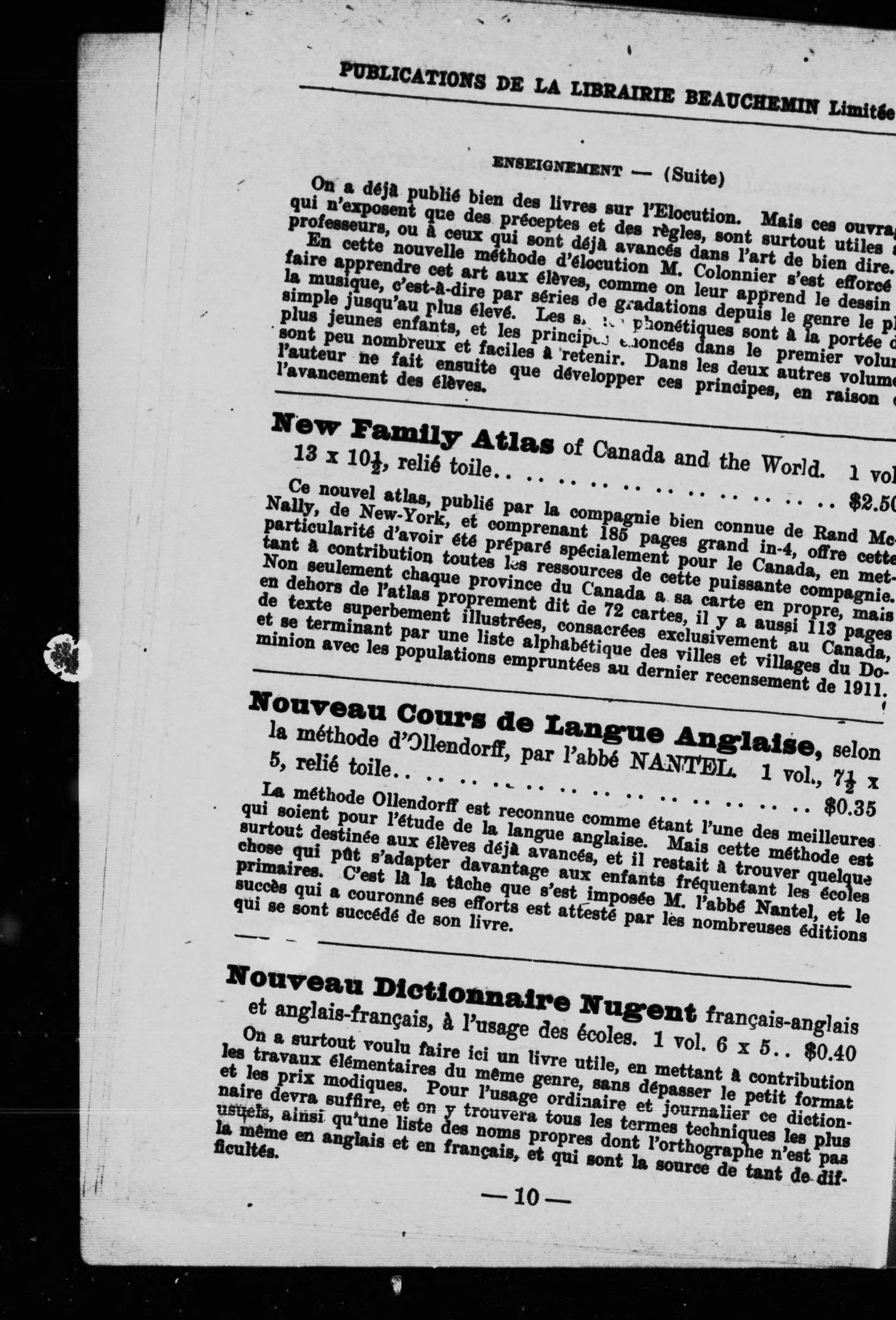 Librairie Beauchemin -- Catalogues.