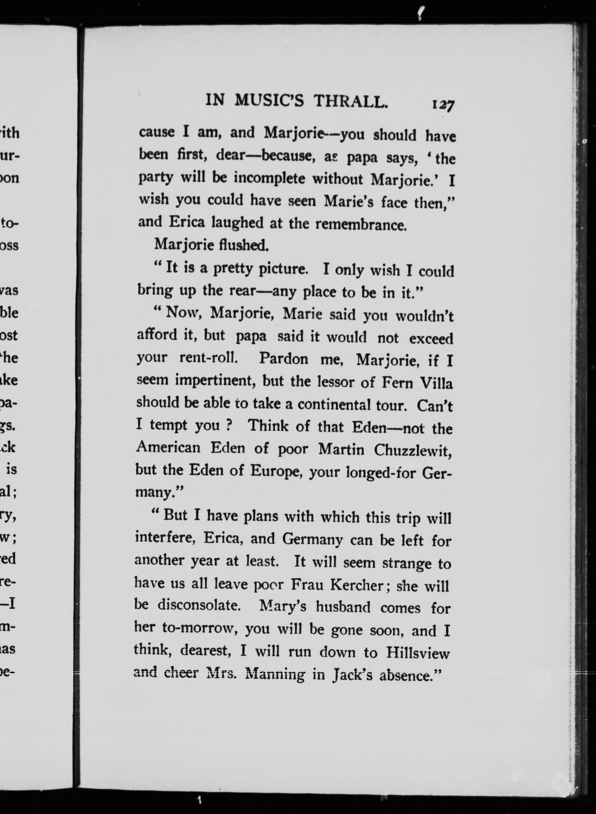 "Go, little book ... here and there Some gentle maid Will greet thee. Thou'lt not be afraid Of bright eyes, blue or brown."