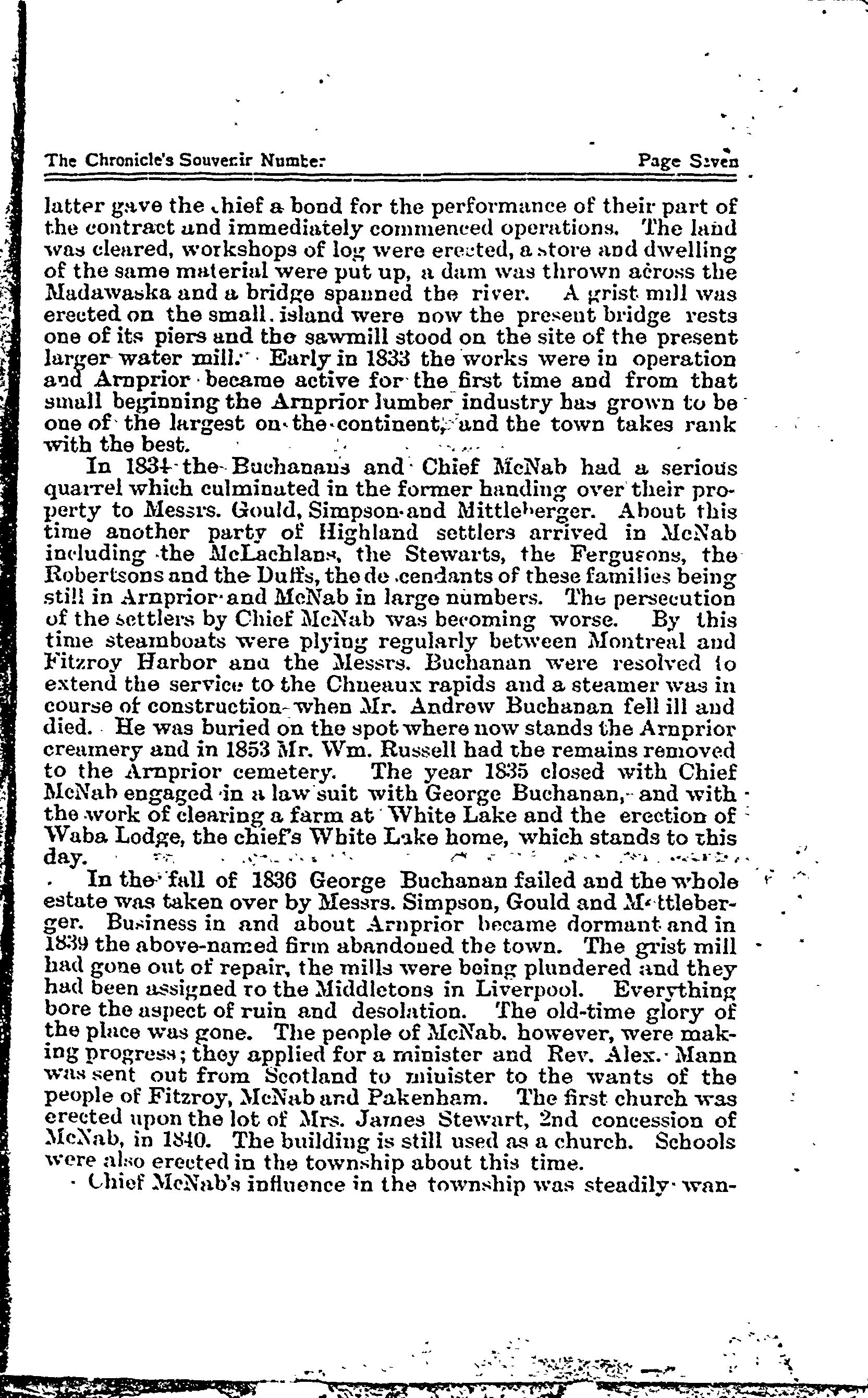 Arnprior (Ont.) -- Histoire. - Document original