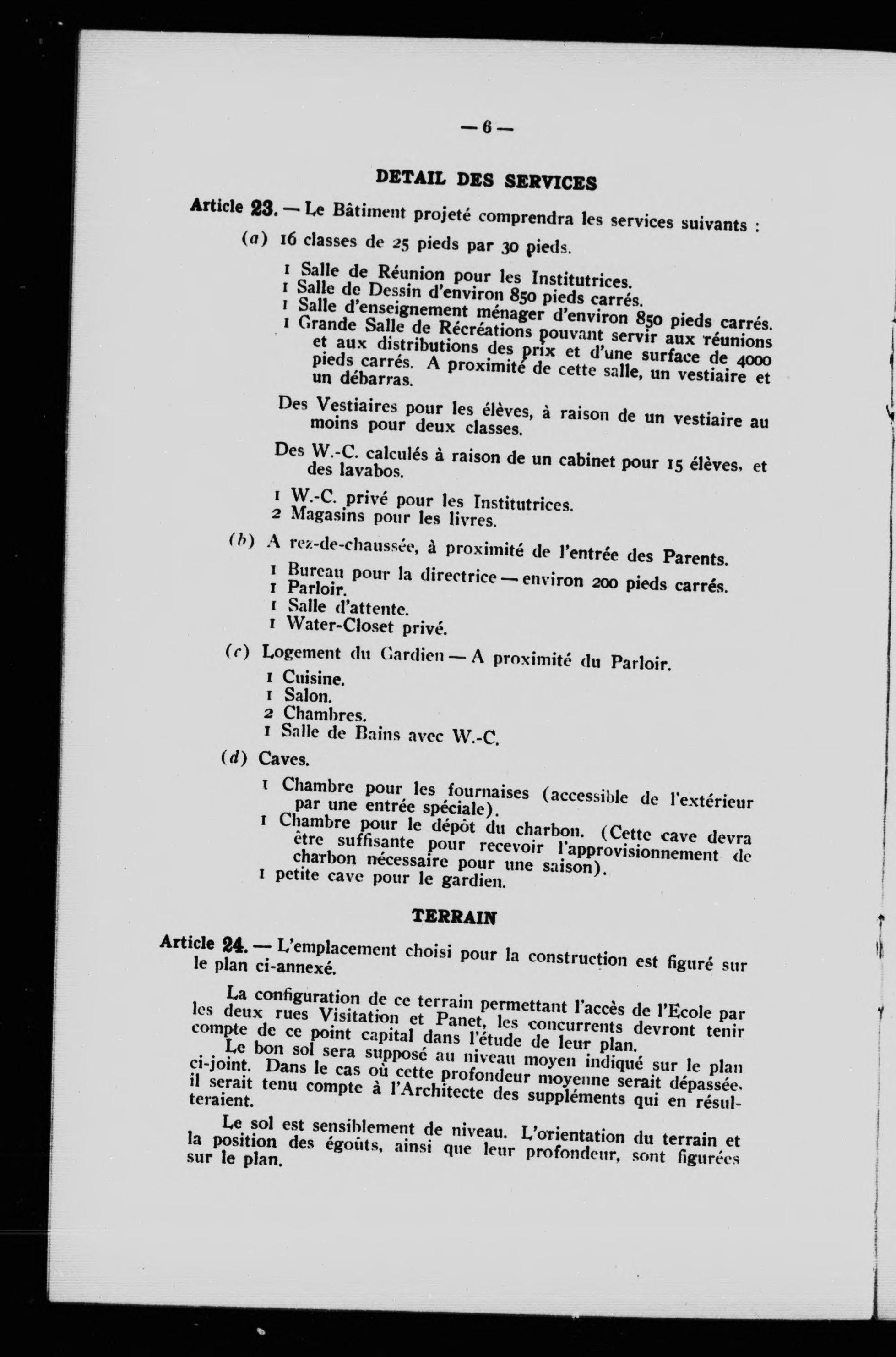 Programme et conditions du concours pour la construction d'une école de filles, rue Visitation, Montréal.